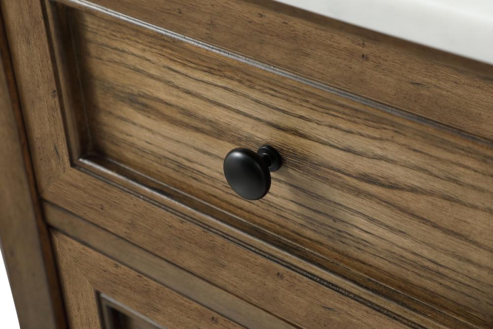 Crafted with durable engineered marble top in ivory white finish