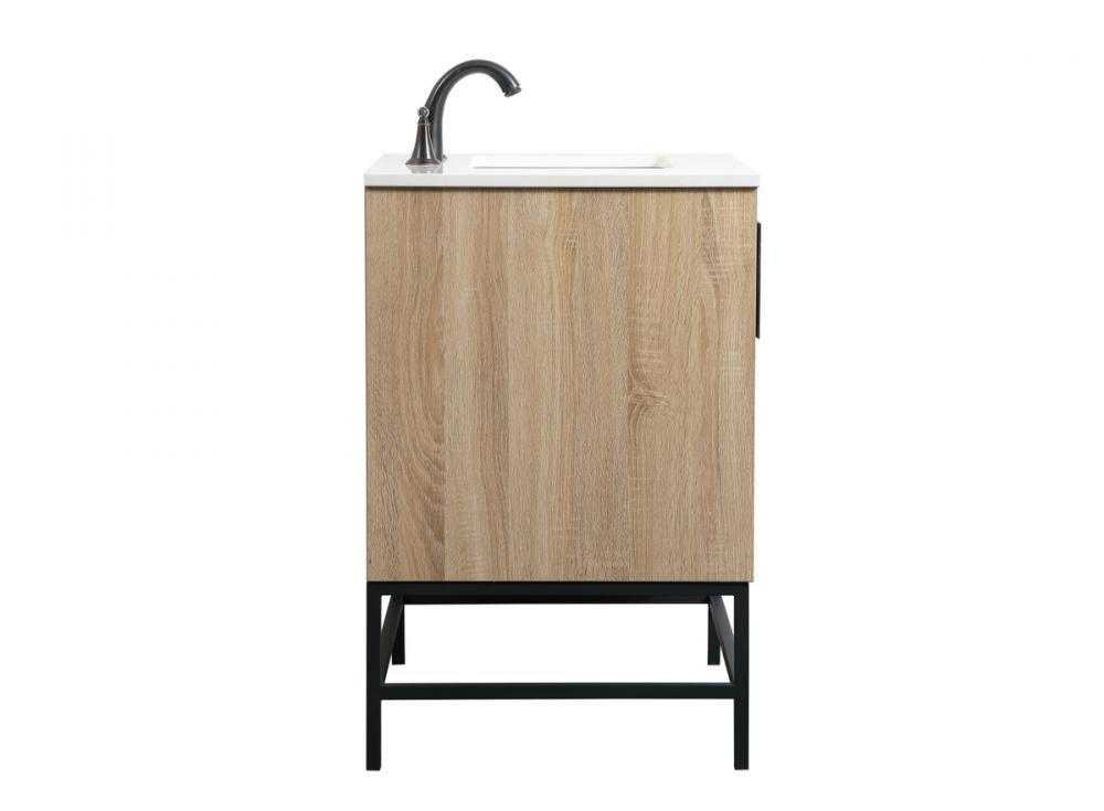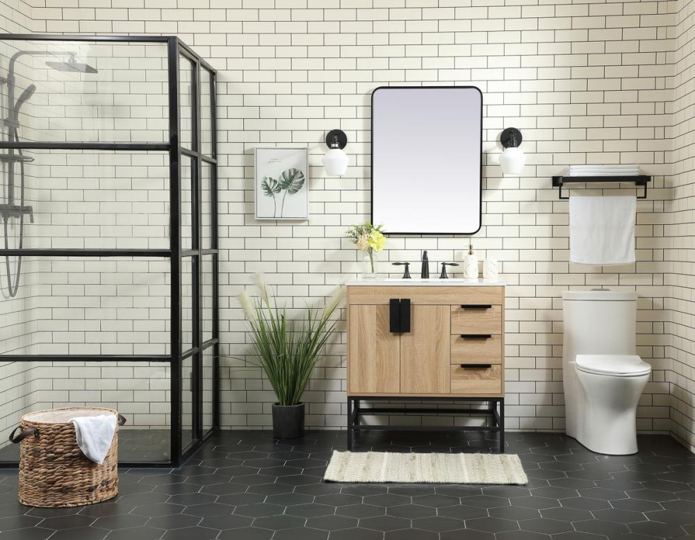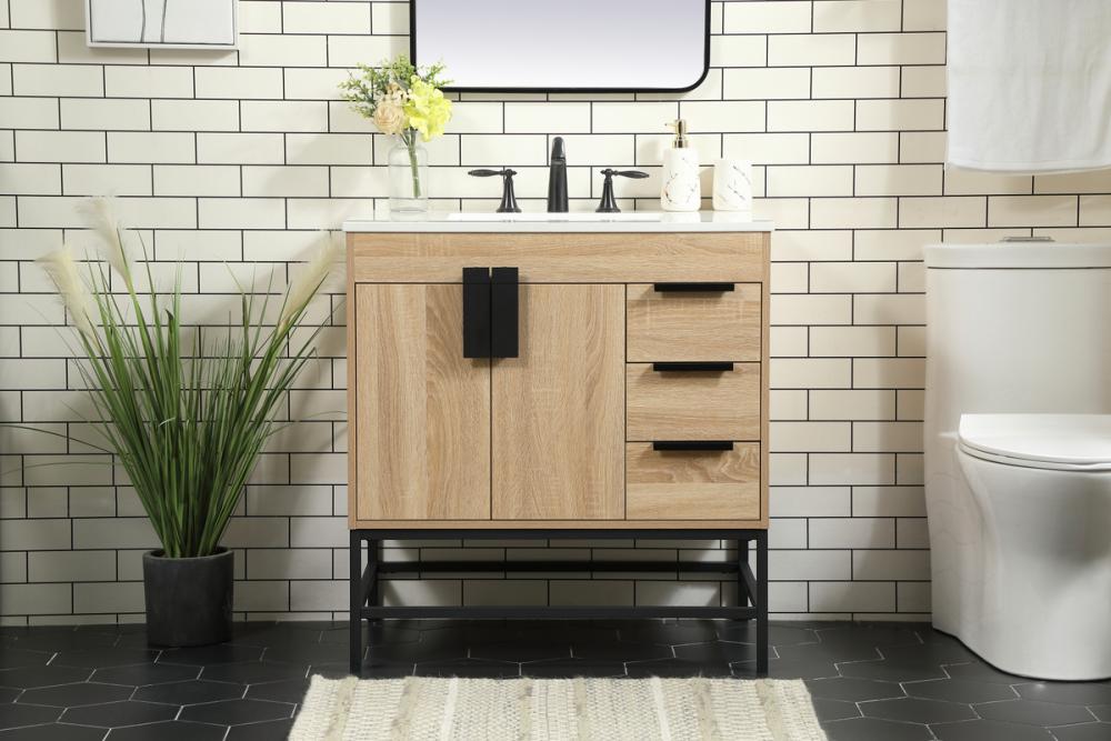 This vanity is a sleek-looking piece of bathroom furniture that is easy to incorporate into your design scheme. The cabinet features a smooth door panel with an oversized steel handle and soft close hinges provide ample room for accessories. Constructed of engineered wood, the powder-coated metal rod legs are an urban industrial look that we love. Minor assembly of the metal legs needed to get this vanity up and running.
