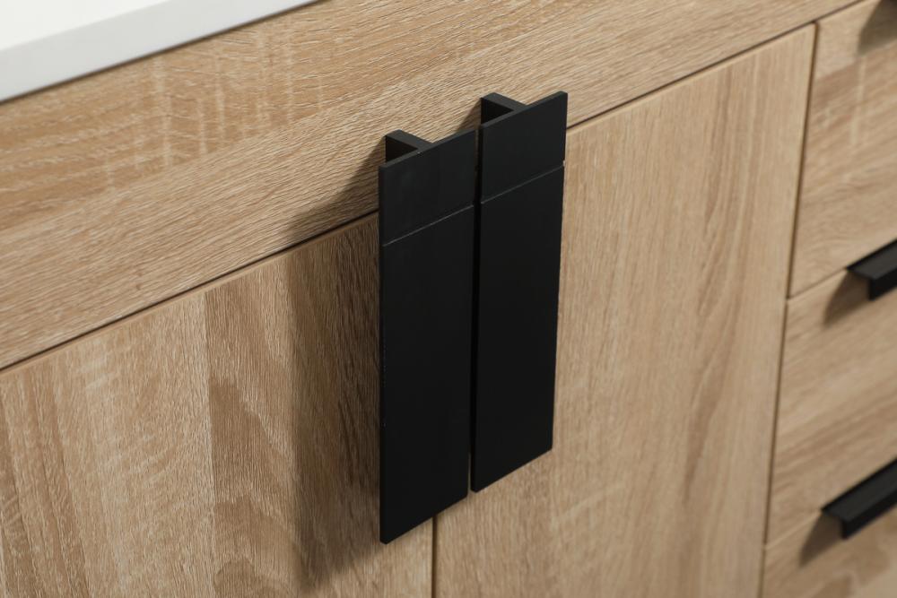 Oversized modern handles accentuates the smooth mdf wood base