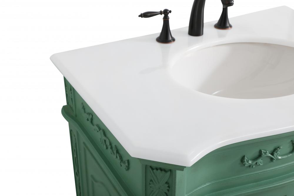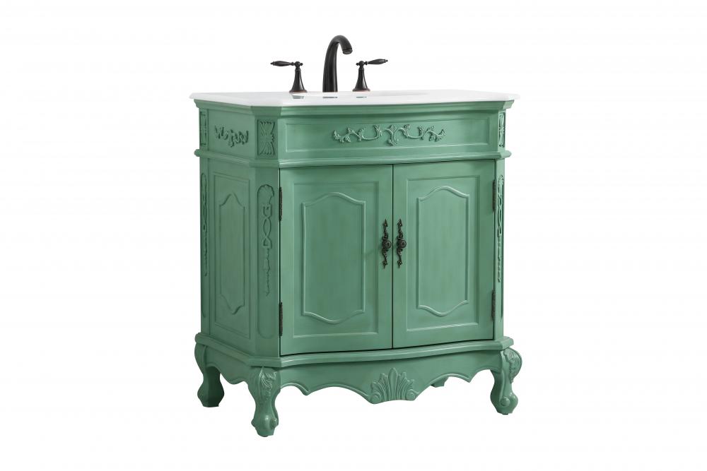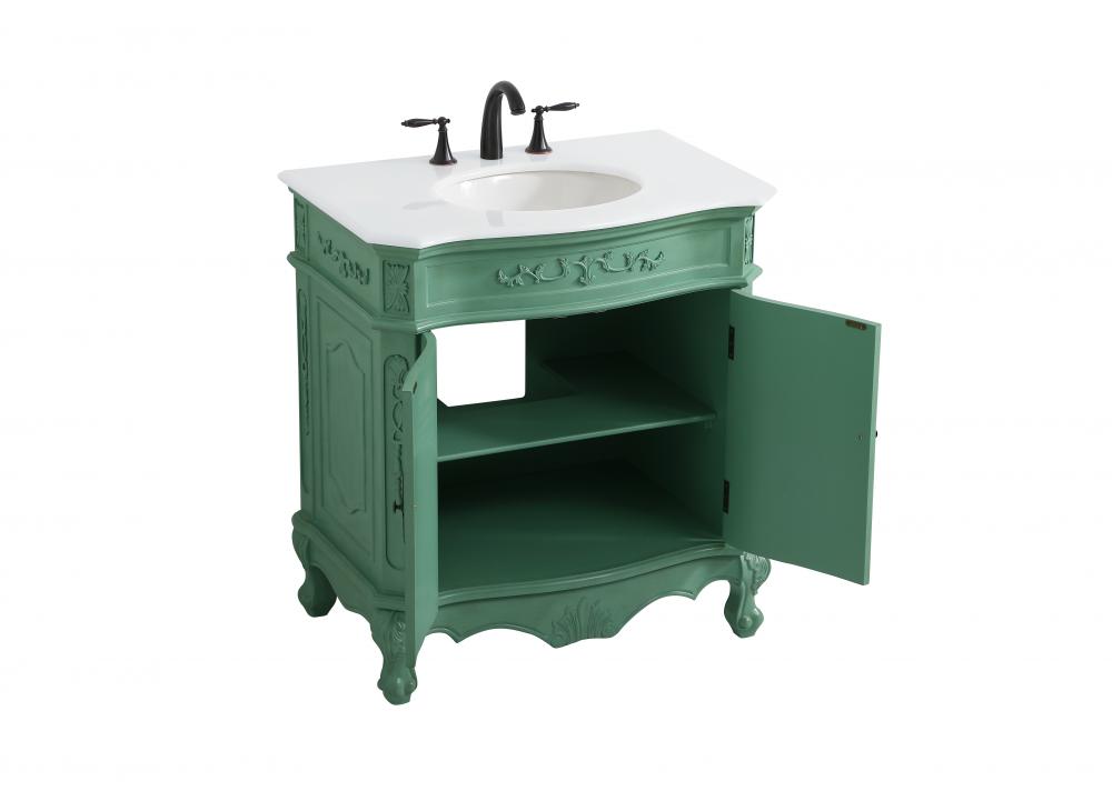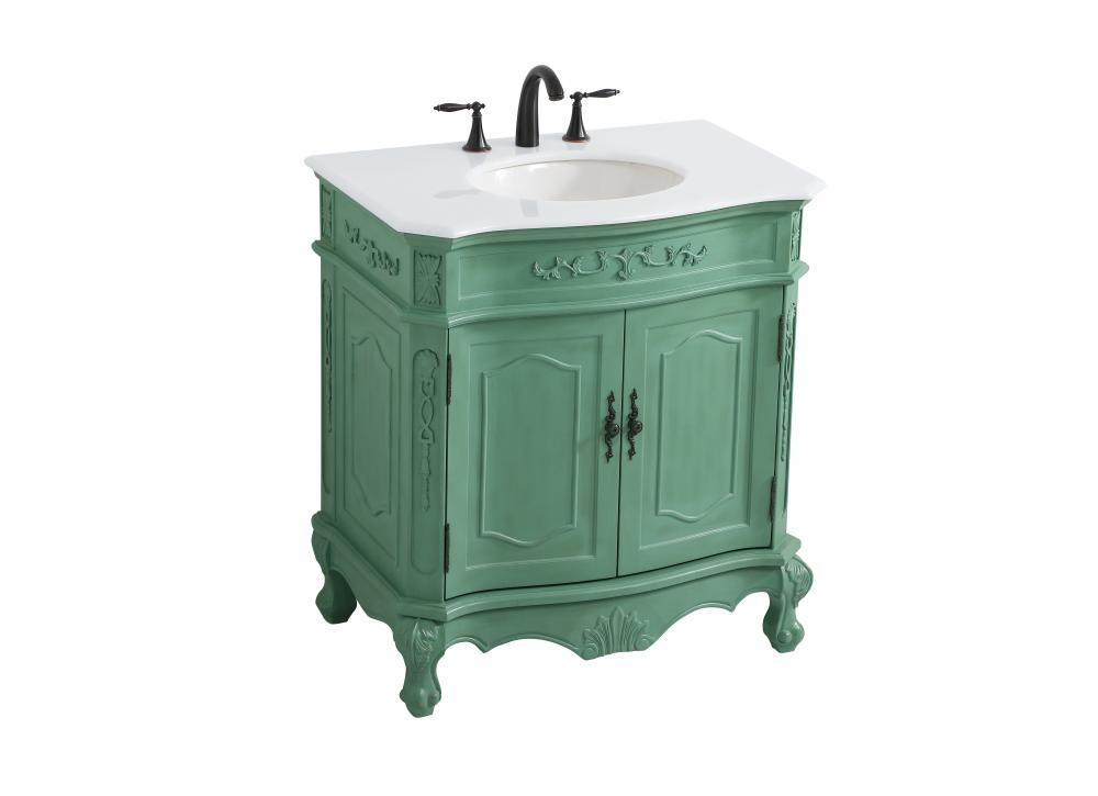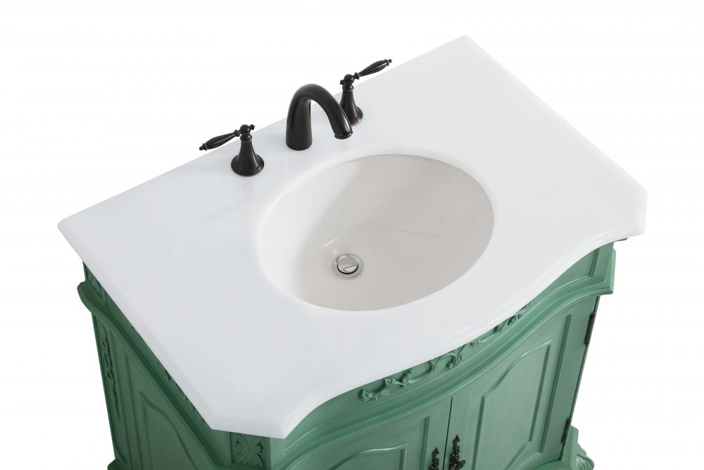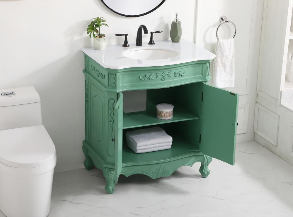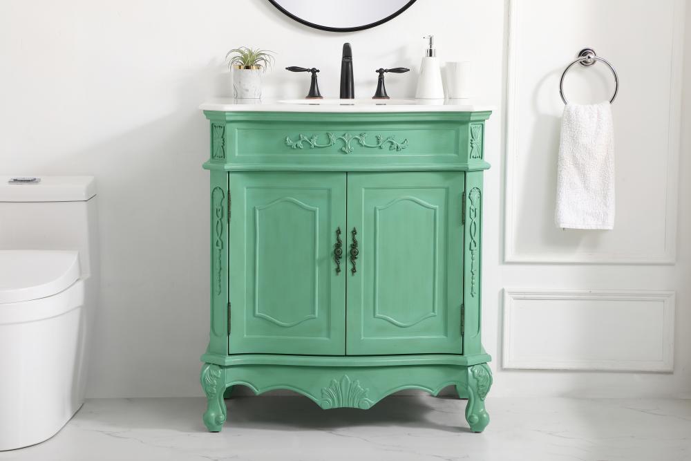 32 inch Single Bathroom vanity in vintage mint with ivory white engineered marble