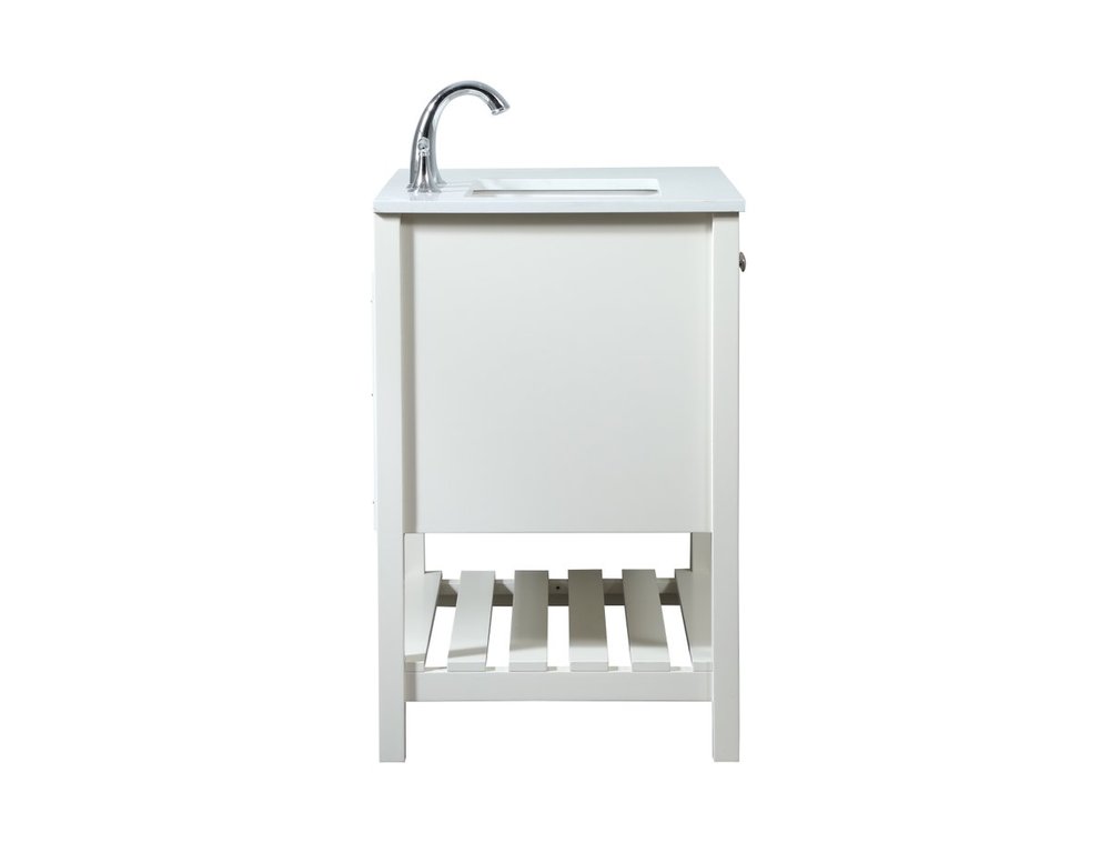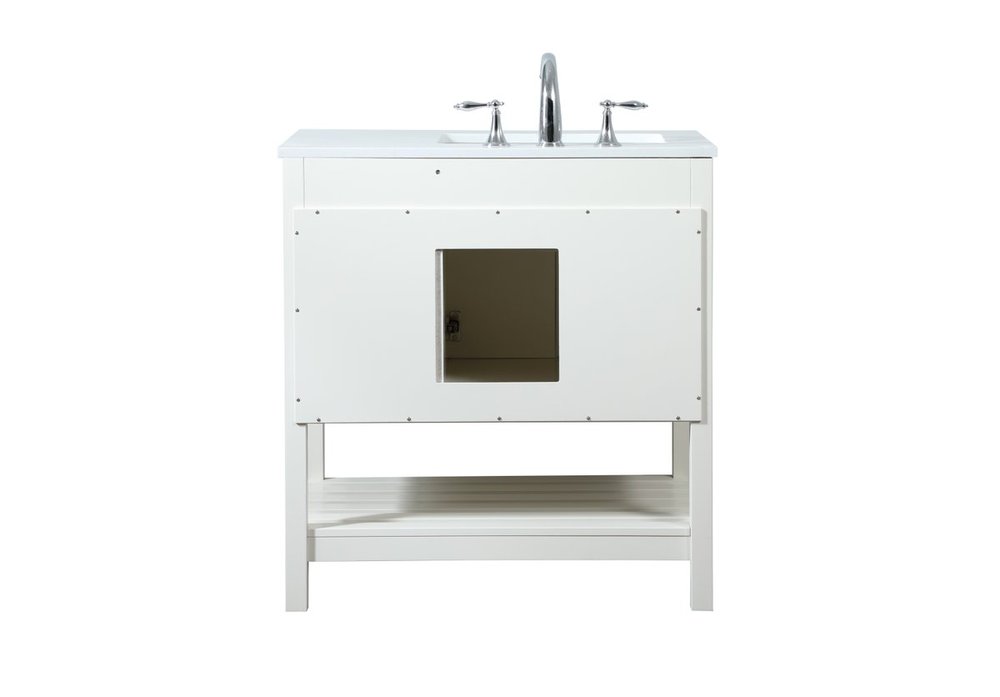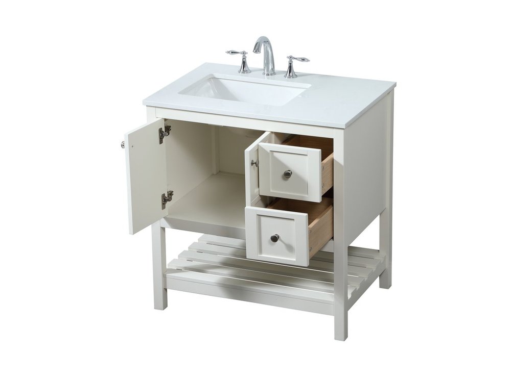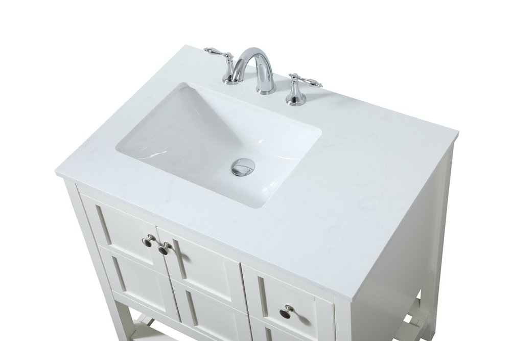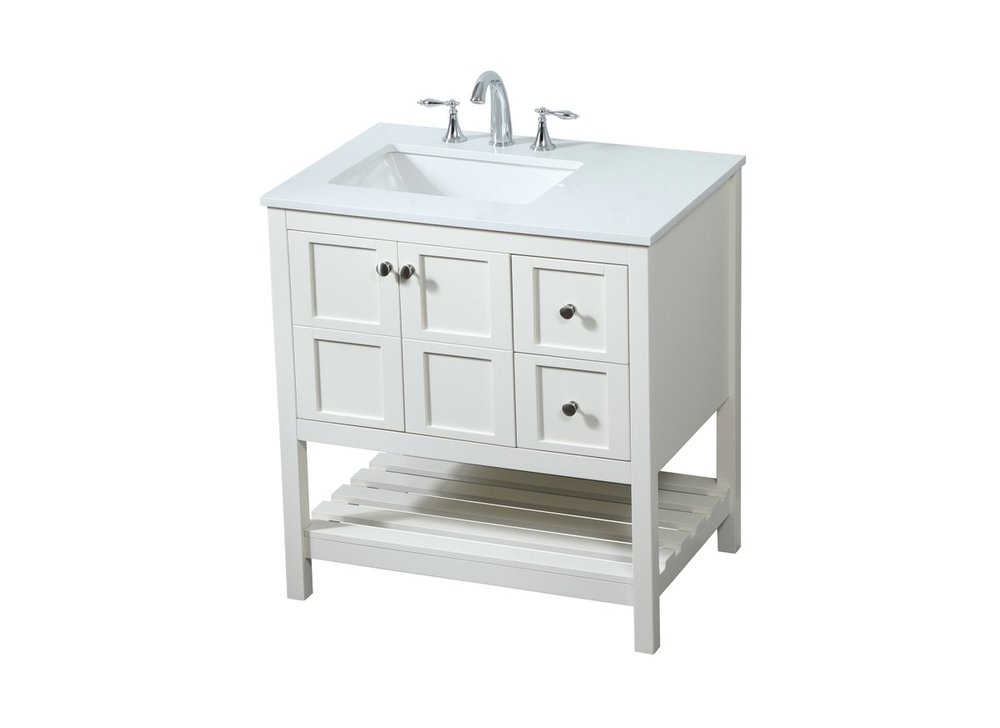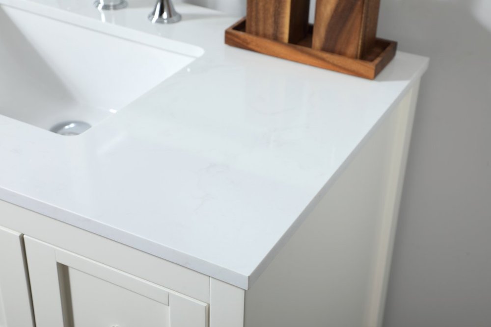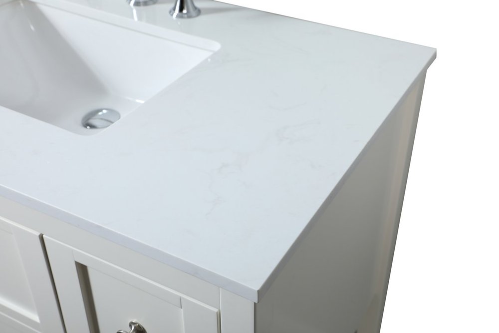 Comes with an undermount porcelain sink and a durable calacatta engineered marble stone top