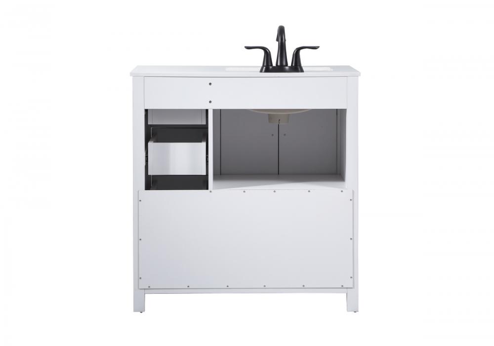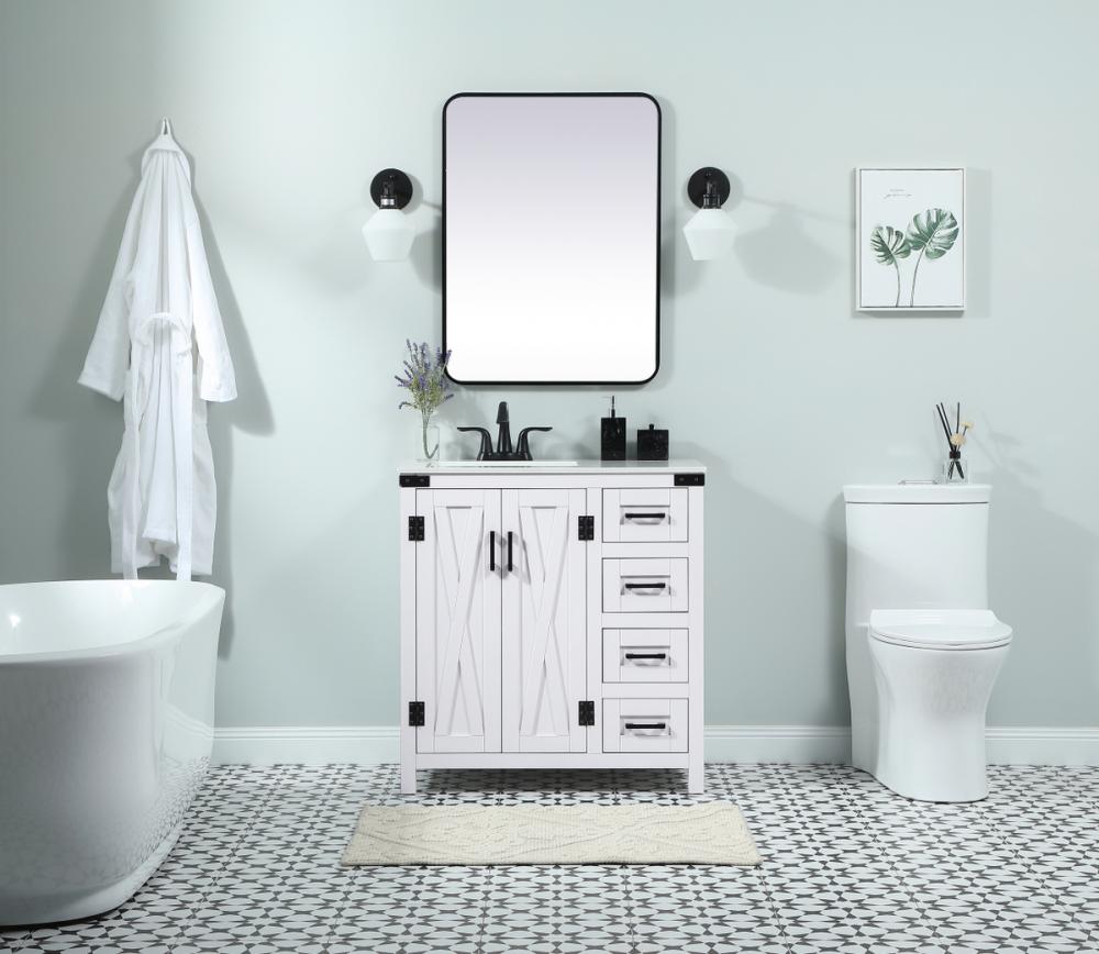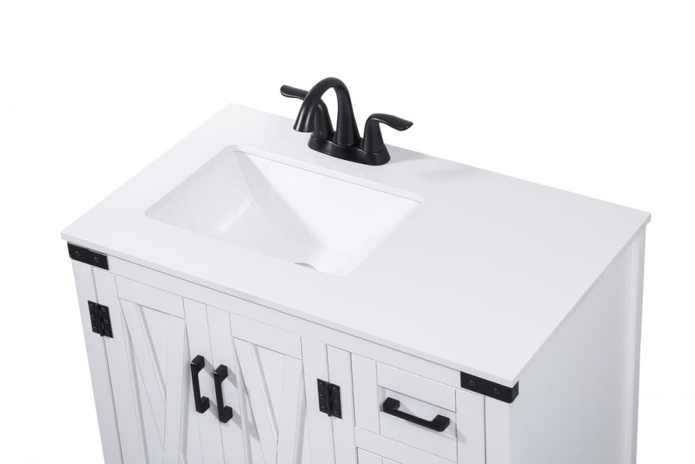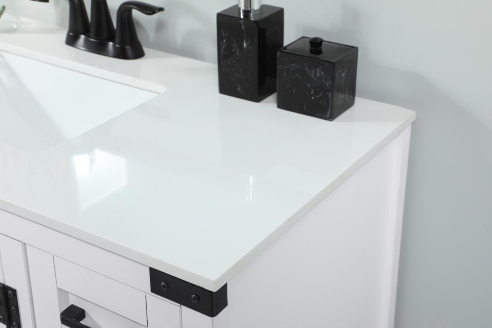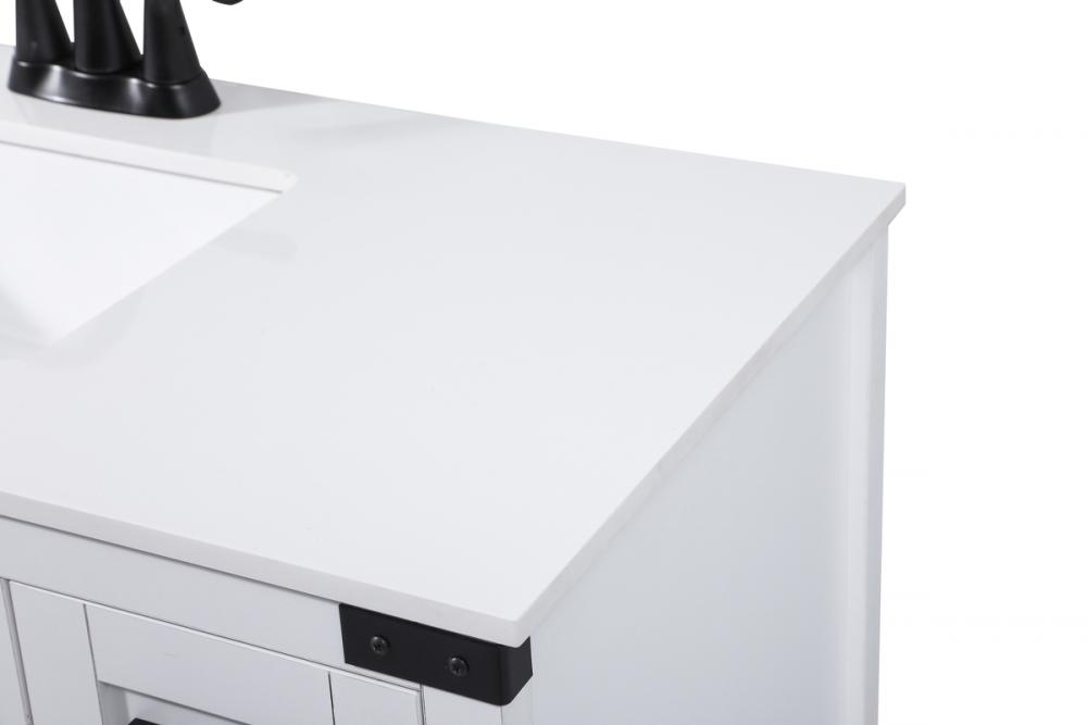 Reminiscent of barn doors, the two door cabinet and four drawers adds both stylistic charm and function with its plethora of storage options for all your bathroom essentials. Whether for your bathroom or the guests', everyone will marvel at its classic look for traditional and farmhouse aesthetics. A slab of engineered marble rounds out the piece up top, as well as the porcelain under mount sink and predrilled faucet holes. This vanity arrives fully assembled.
