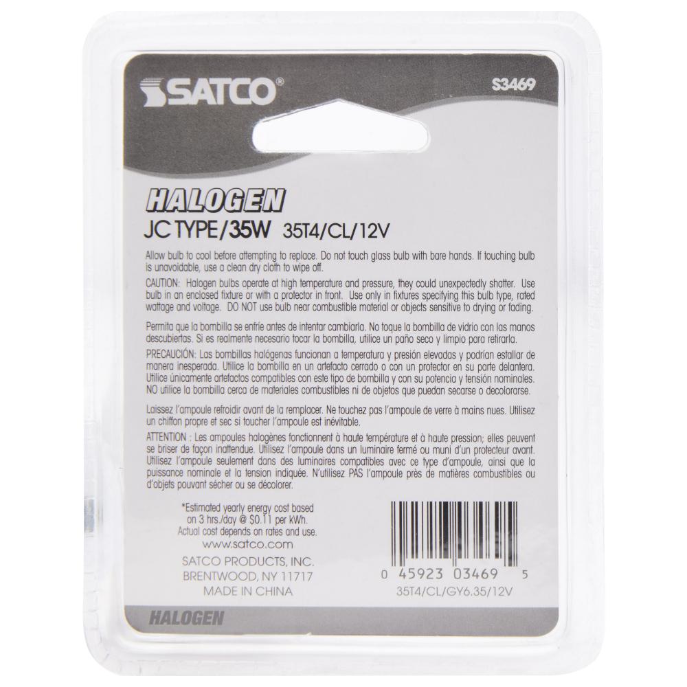 35 Watt; Halogen; T4; Clear; 2000 Average rated hours; 595 Lumens; Bi Pin GY6.35 base; 12 Volt; Carded