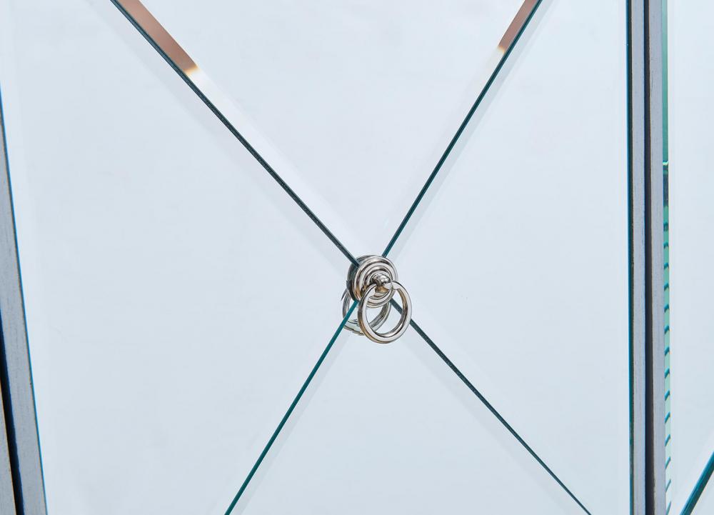 Beautiful vanity with an authentic carerra white marble top. The door is decorated in crisscrossed mirror panels in a hand-rubbed in silver finish. Decorated with brushed steel knobs and ring pull, this vanity will add a clean, sharp contemporary look and destine to please. Vanity ships ready to install.