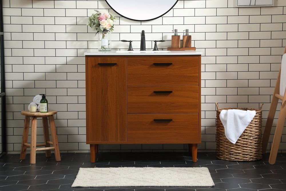 36 inch bathroom vanity in Teak