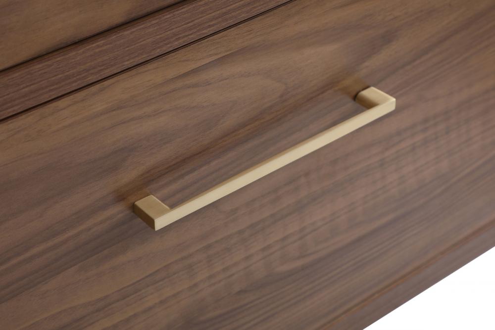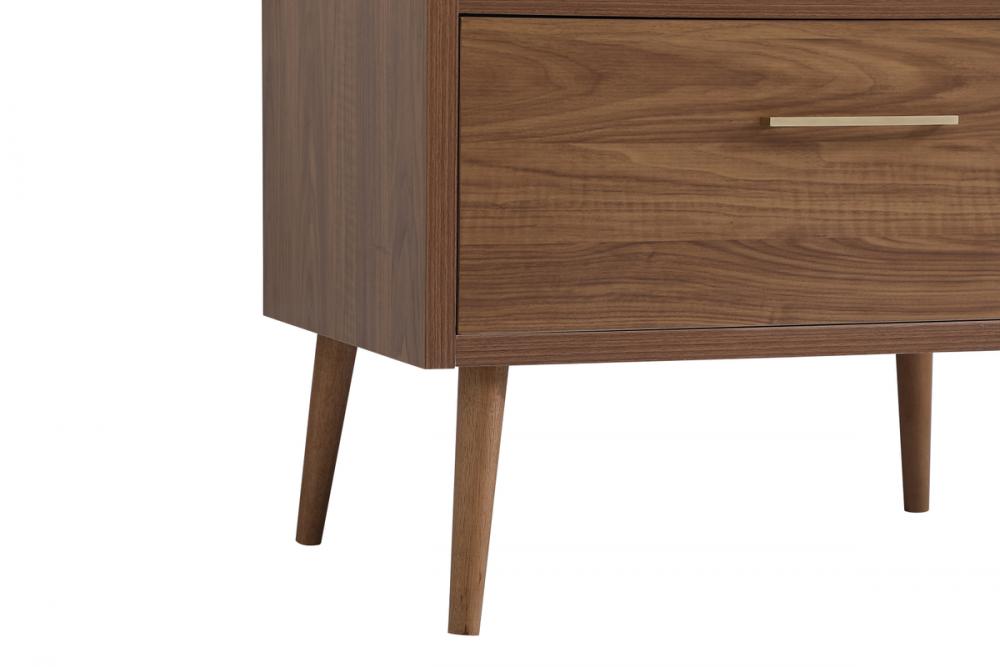 Delve into a world of minimalistic fashion and contemporary styling with this midcentury modern 36" vanity. The clean lines anchors the design, while the oblique tapered cylinder legs add subtle interest. However, the artful juxtaposition creates a blend of bright modernity and classical traditions. A gold handle adorns the top fake drawer hiding the base of the undermount porcelain sink while another one allows you to pull the bottom drawer out, letting you store your bathroom necessities and toiletries. The compact size makes it the perfect vanity for any bathroom or powder room, regardless of size.