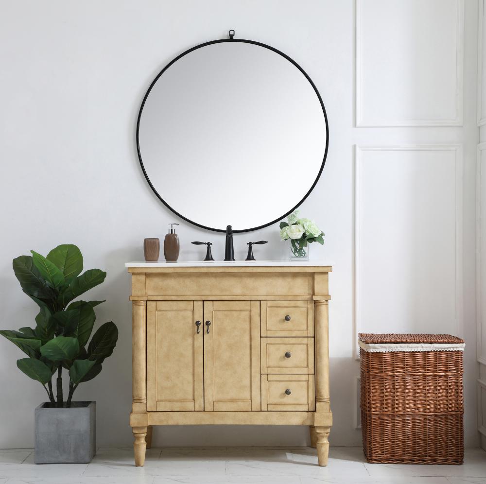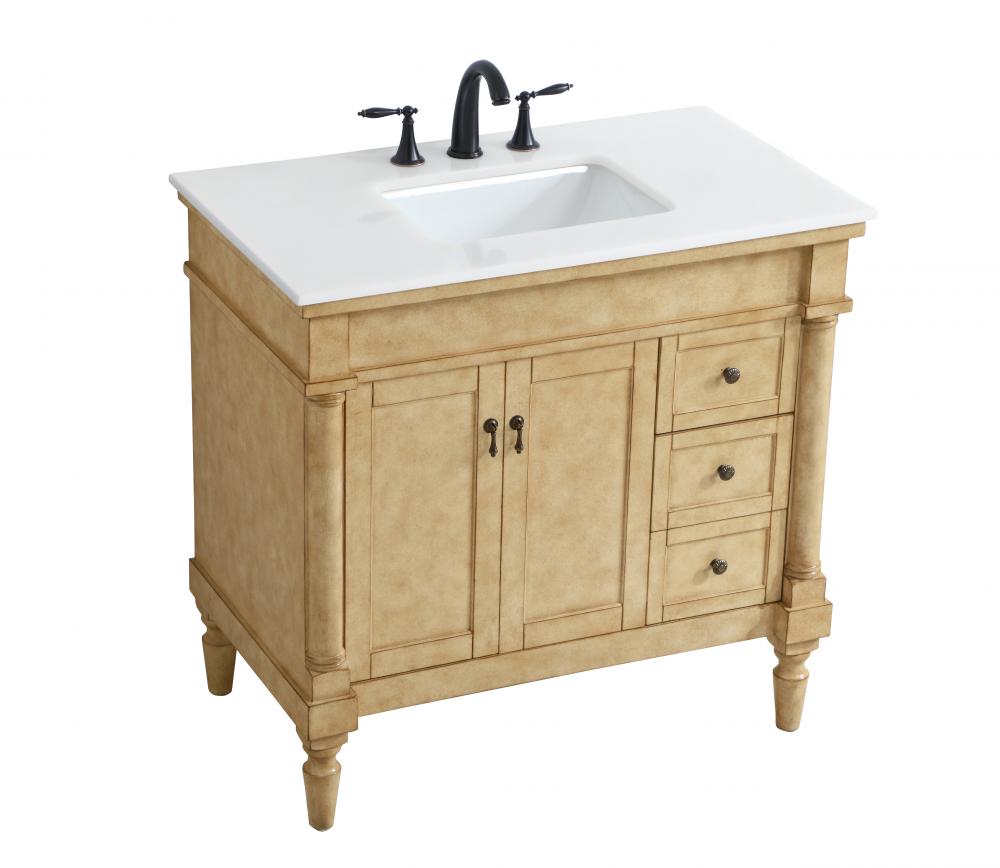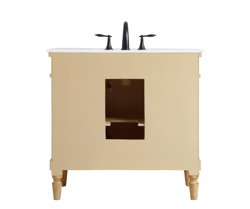 36 inch Single Bathroom vanity in Antique Beige with ivory white engineered marble