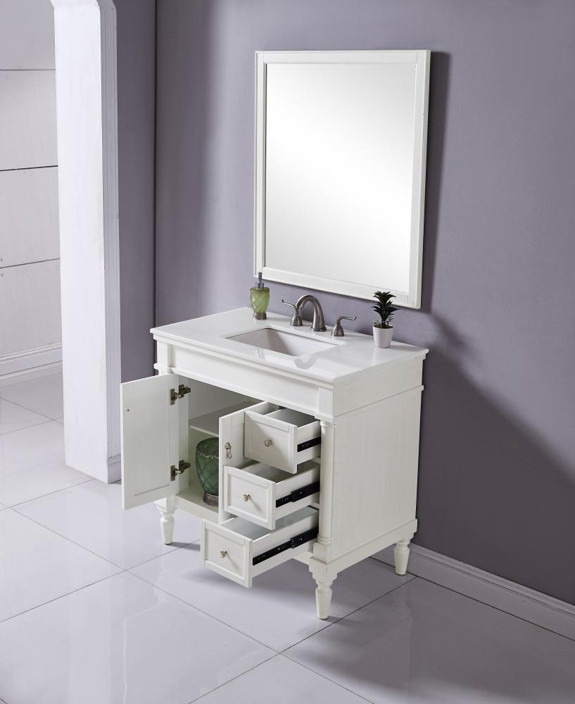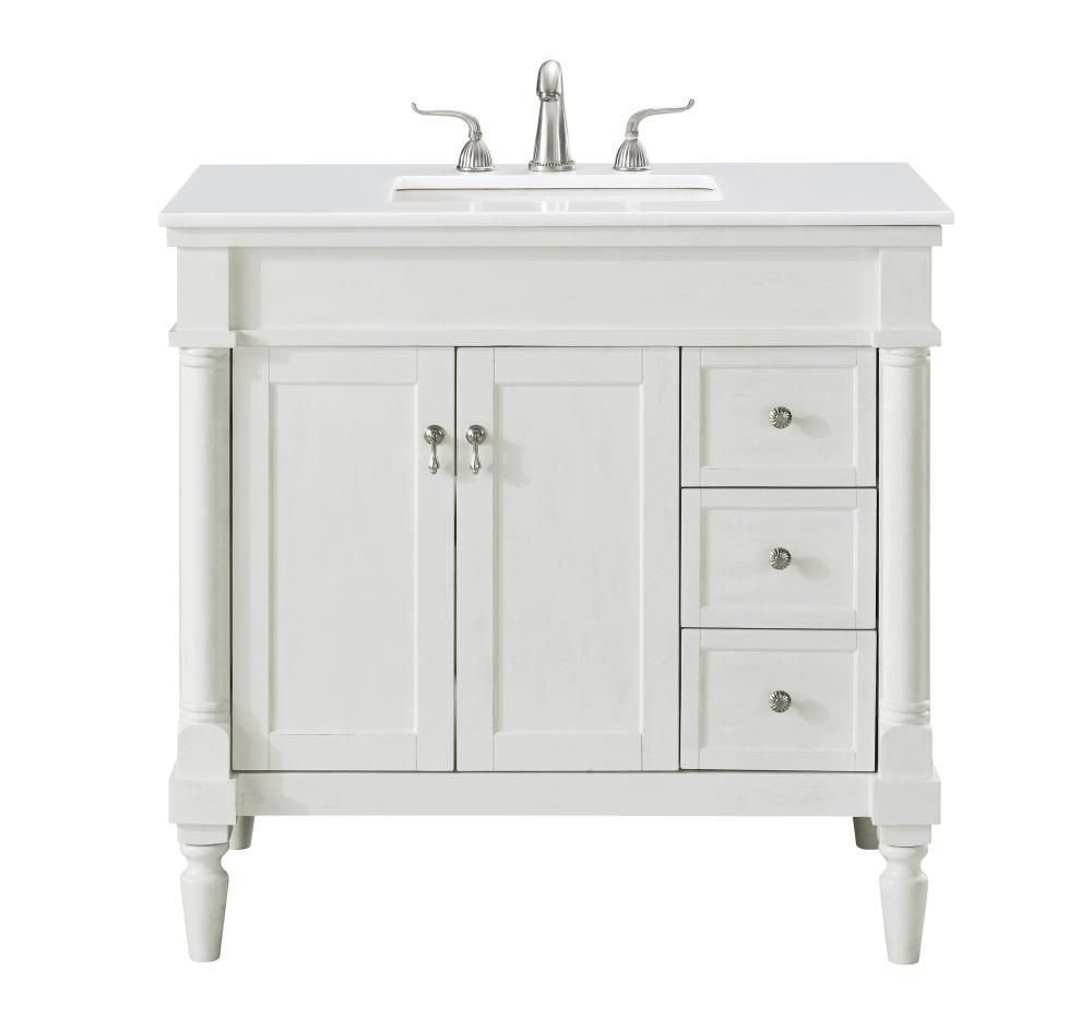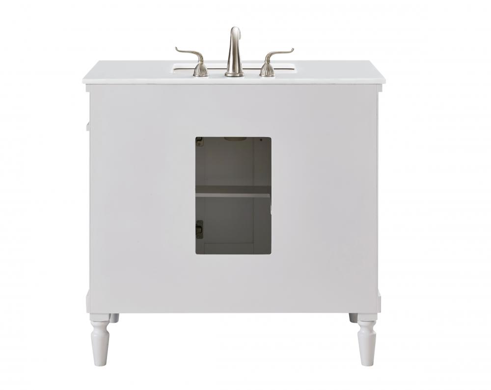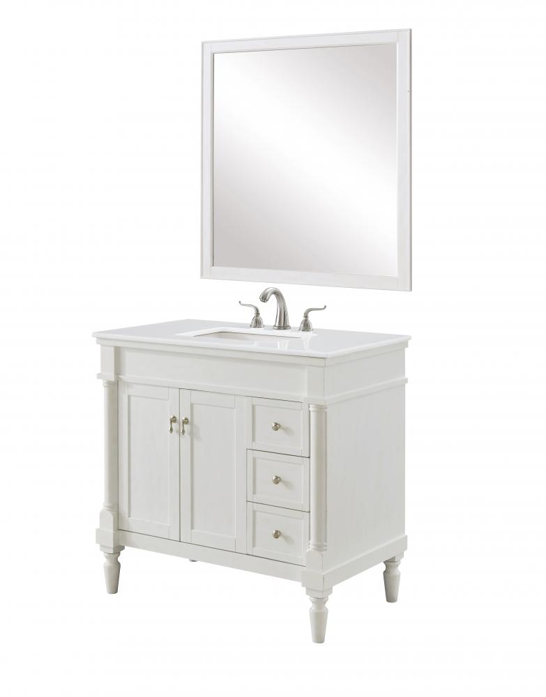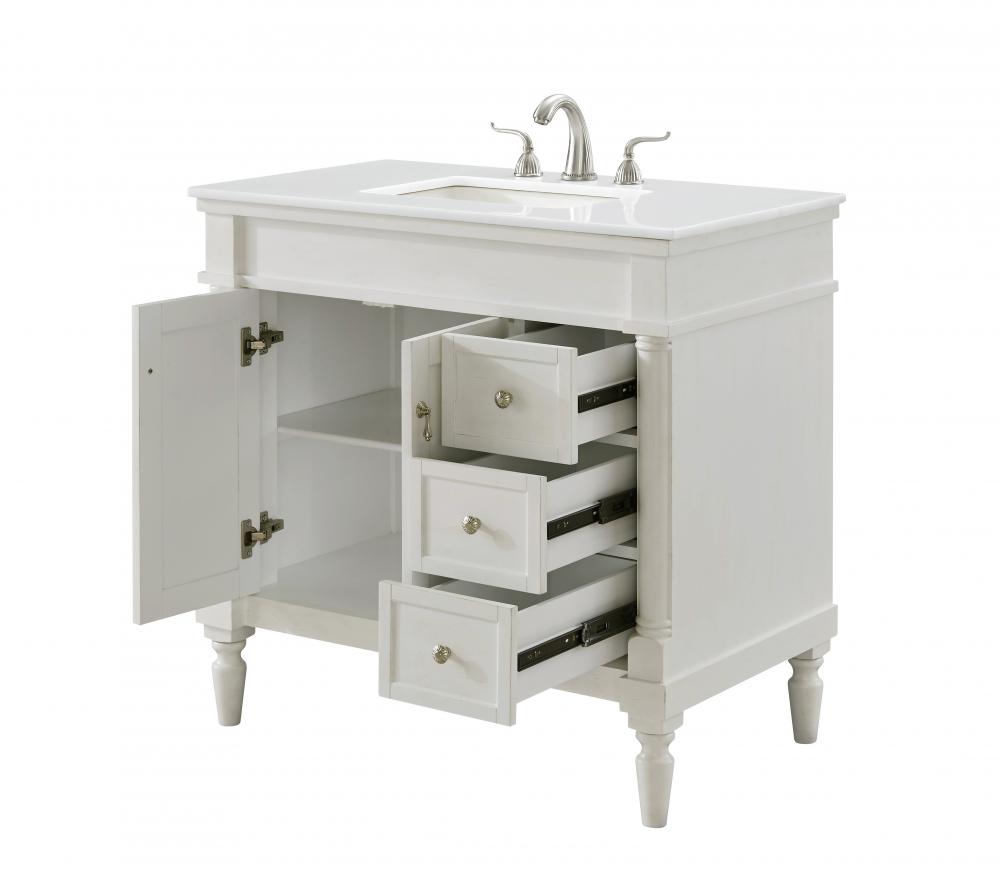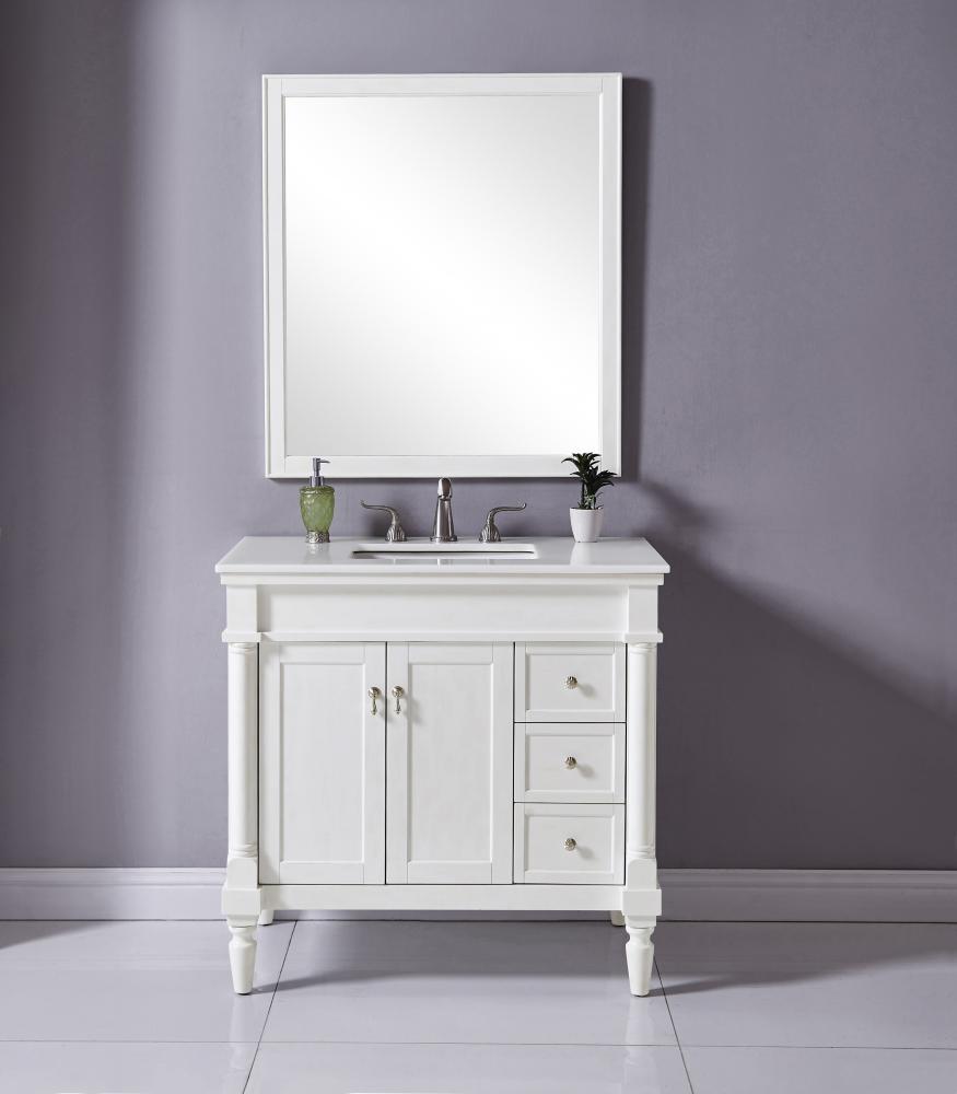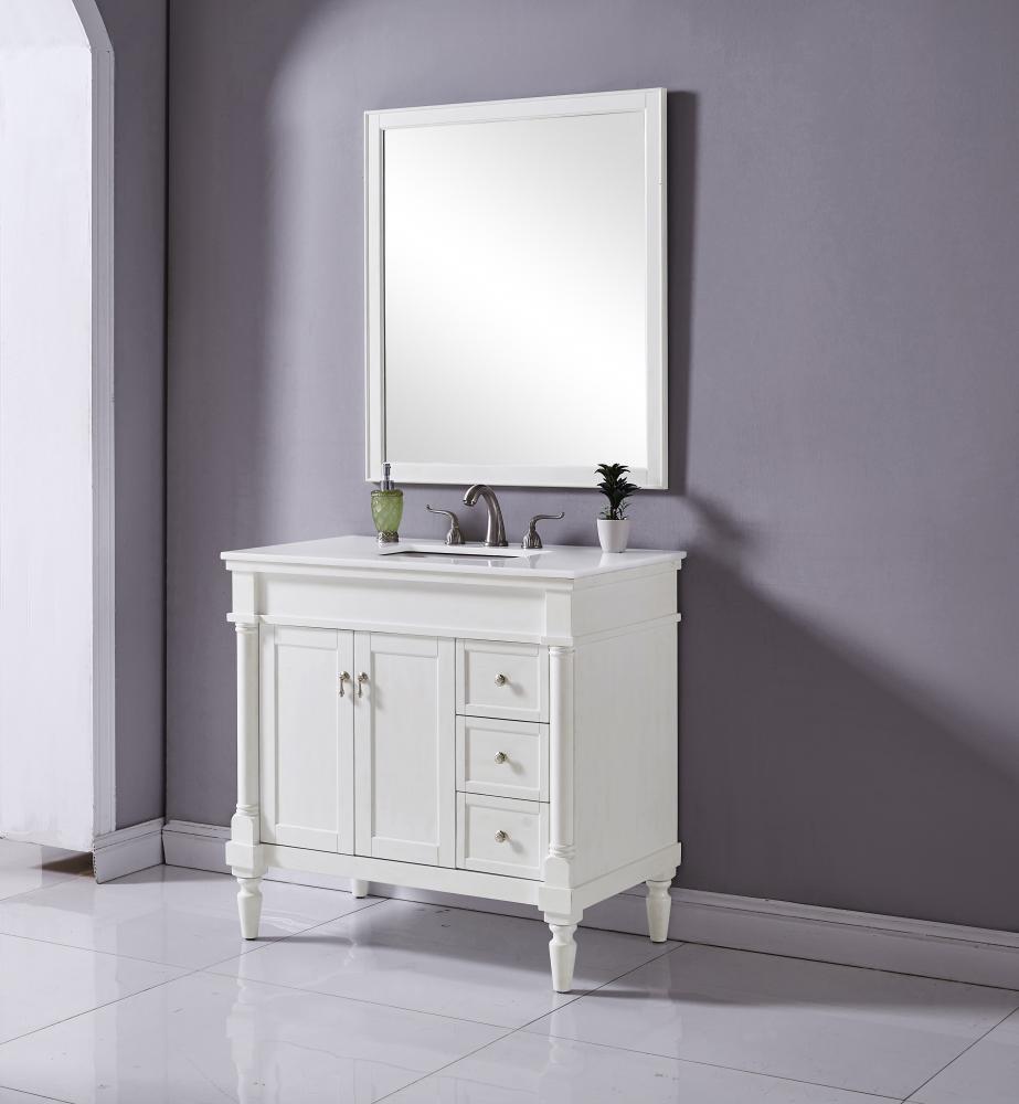 36 inch Single Bathroom vanity in Antique White with ivory white engineered marble