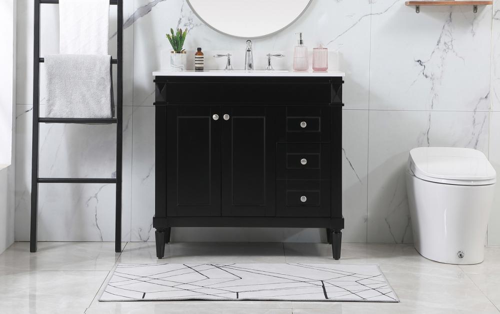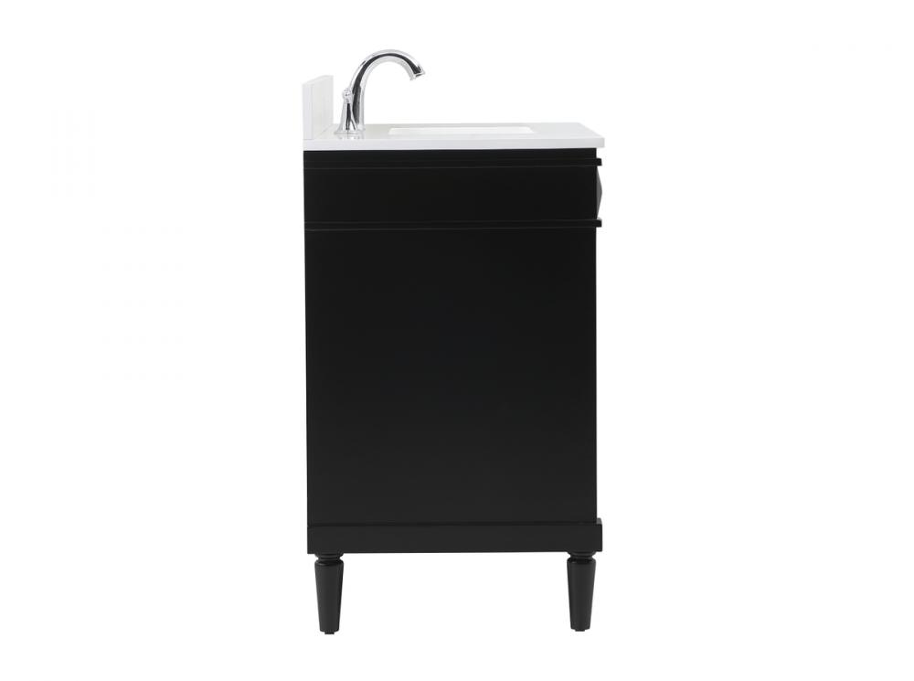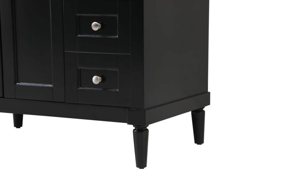 This transitional vanity is a beautiful piece of bathroom furniture will look amazing in your design scheme. The cabinet features a shaker style smooth door panel with simple round knobs and soft close hinges provide ample room for accessories. Packed with multiple side drawers with soft close glides for added comfort and full access to bath supplies. Convenient deep drawer stores all of your tall bath essentials. Constructed of engineered wood and solid wood legs with hand painted finish. The durable engineered marble countertop is a versatile material in an ivory white finish. Minor assembly of the legs needed to get this vanity up and running. Comes with a matching backsplash to complete the look and protects your wall.