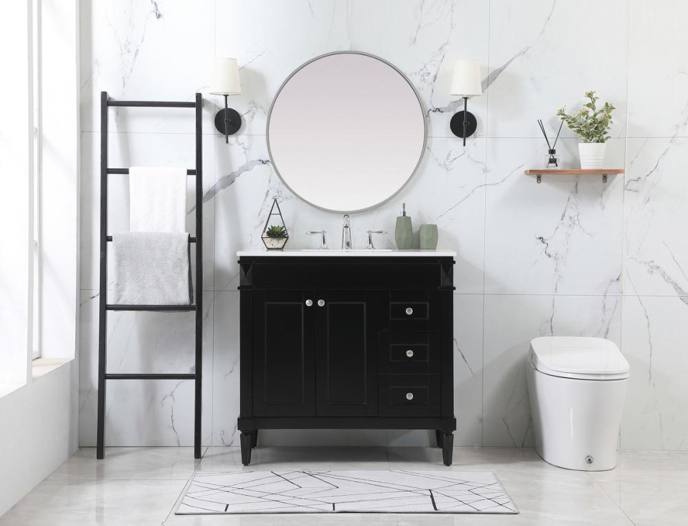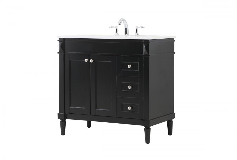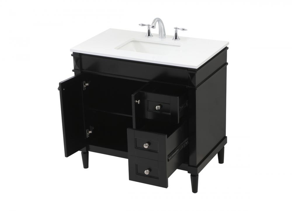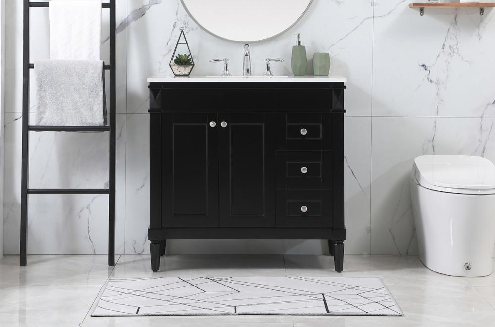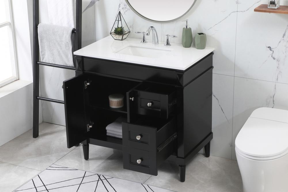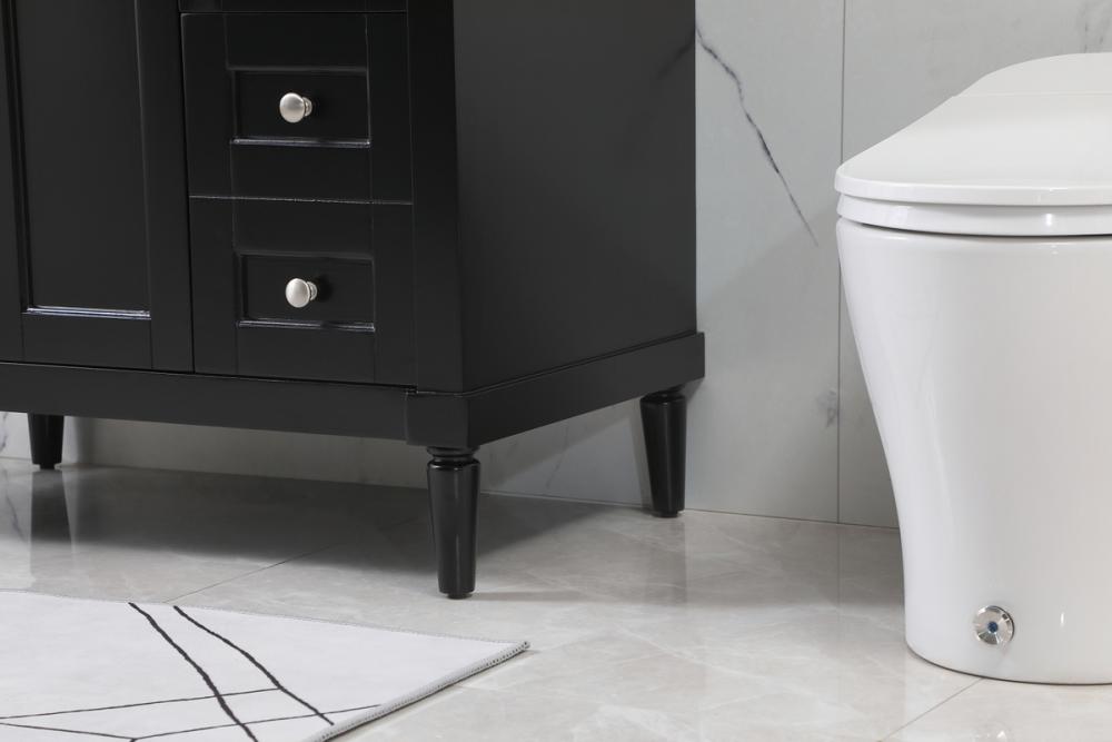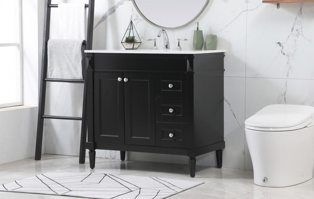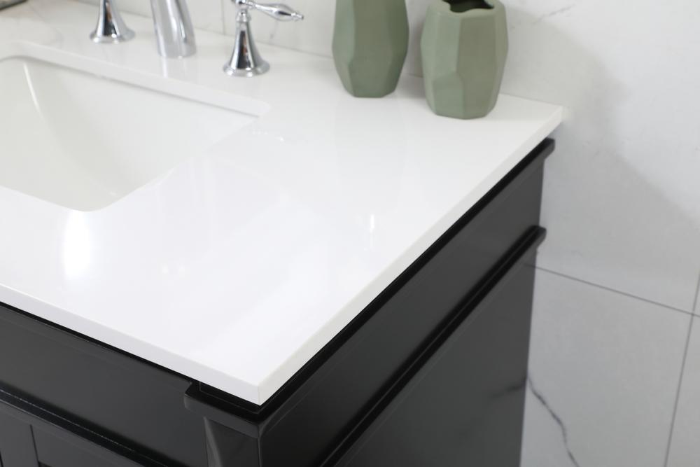 This transitional vanity is a beautiful piece of bathroom furniture will look amazing in your design scheme. The cabinet features a shaker style smooth door panel with simple round knobs and soft close hinges provide ample room for accessories. Packed with multiple side drawers with soft close glides for added comfort and full access to bath supplies. Convenient deep drawer stores all of your tall bath essentials. Constructed of engineered wood and solid wood legs with hand painted finish. The durable engineered marble countertop is a versatile material in an ivory white finish. Minor assembly of the legs needed to get this vanity up and running.