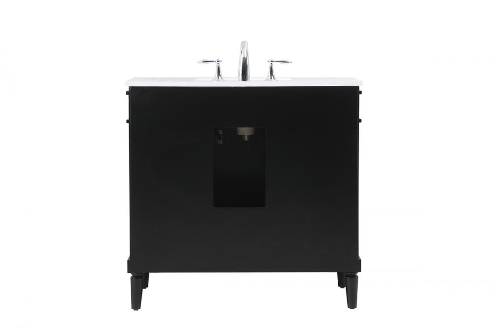 Crafted with durable engineered marble top in ivory white finish and vanity base is hand painted