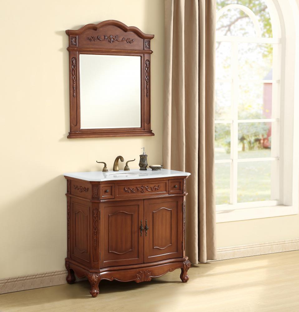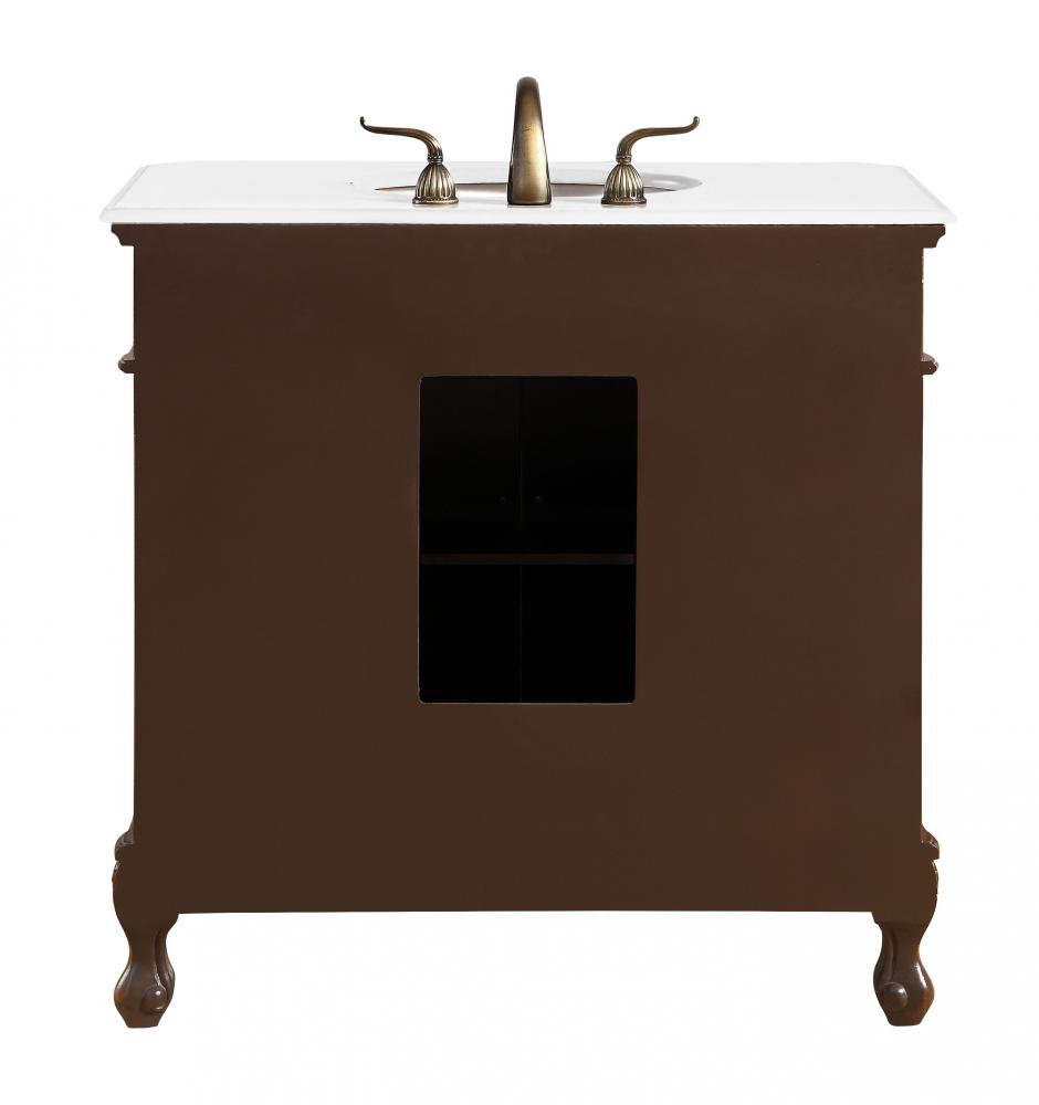 36 inch Single Bathroom vanity in Brown with ivory white engineered marble