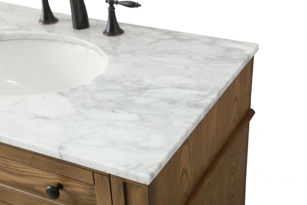 Comes with an undermount porcelain sink and a carrara white marble countertop