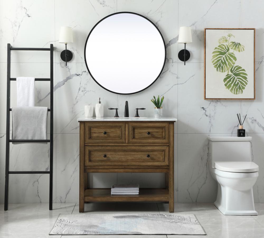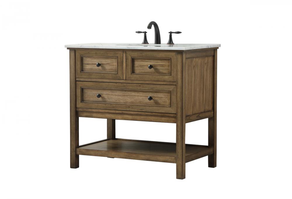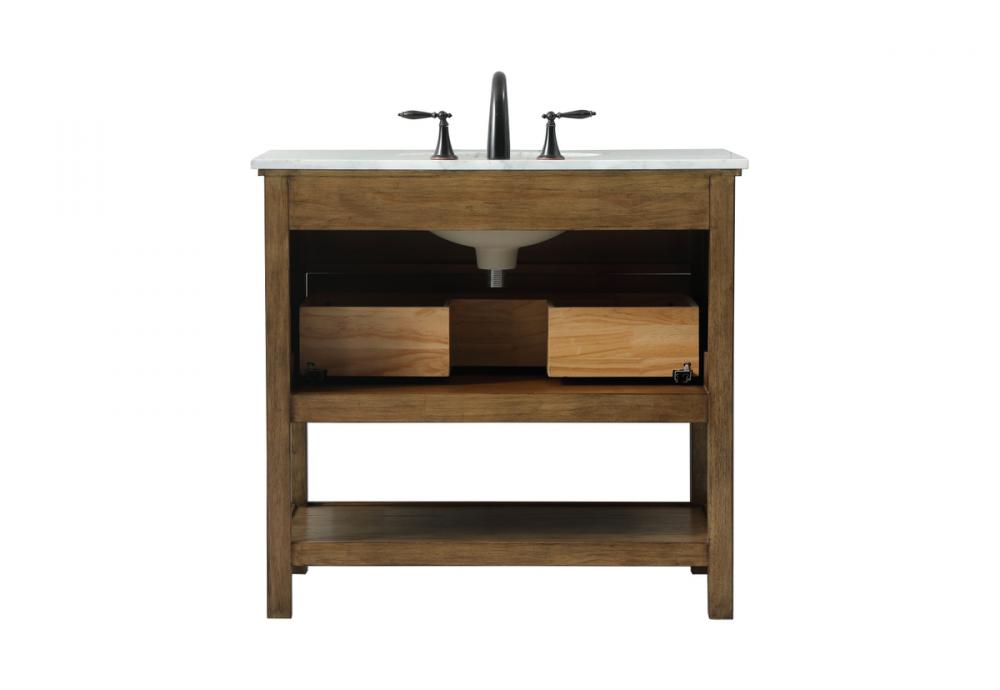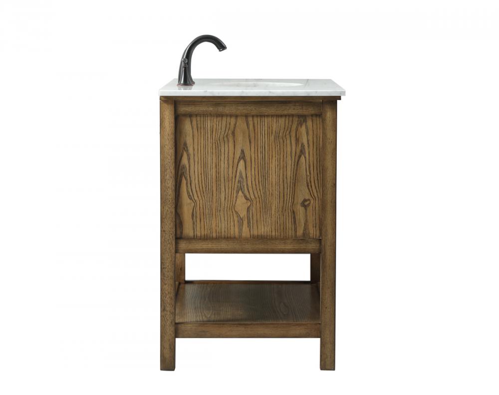 Clean lines and classic form can truly add a fresh look to your bathroom or powder room. This vanity, complemented by round hardware, will surely charm you with its confident style and subtle charisma. This vanity can store all of your bathroom toiletries, from extra towels to make up essentials. The vanity is crowned with carrara white marble and includes a porcelain undermount sink--adding both function and form that will truly amaze.