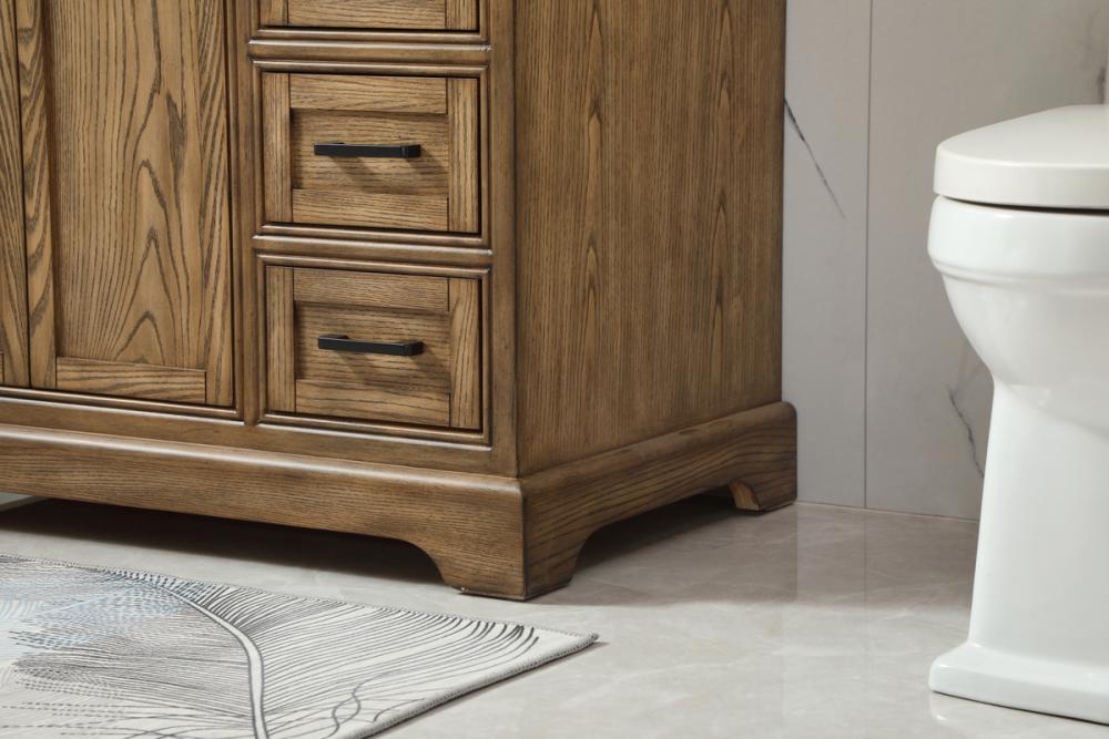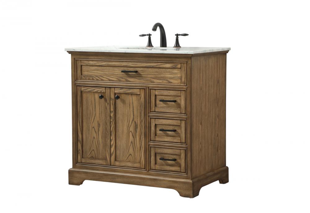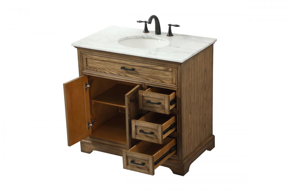 Clean lines and classic form can truly add a fresh look to your bathroom or powder room. This vanity, complemented by round hardware, will surely charm you with its confident style and subtle charisma. This vanity can store all of your bathroom toiletries, from extra towels to make up essentials. The vanity is crowned with carrara white marble and includes a porcelain undermount sink--adding both function and form that will truly amaze.