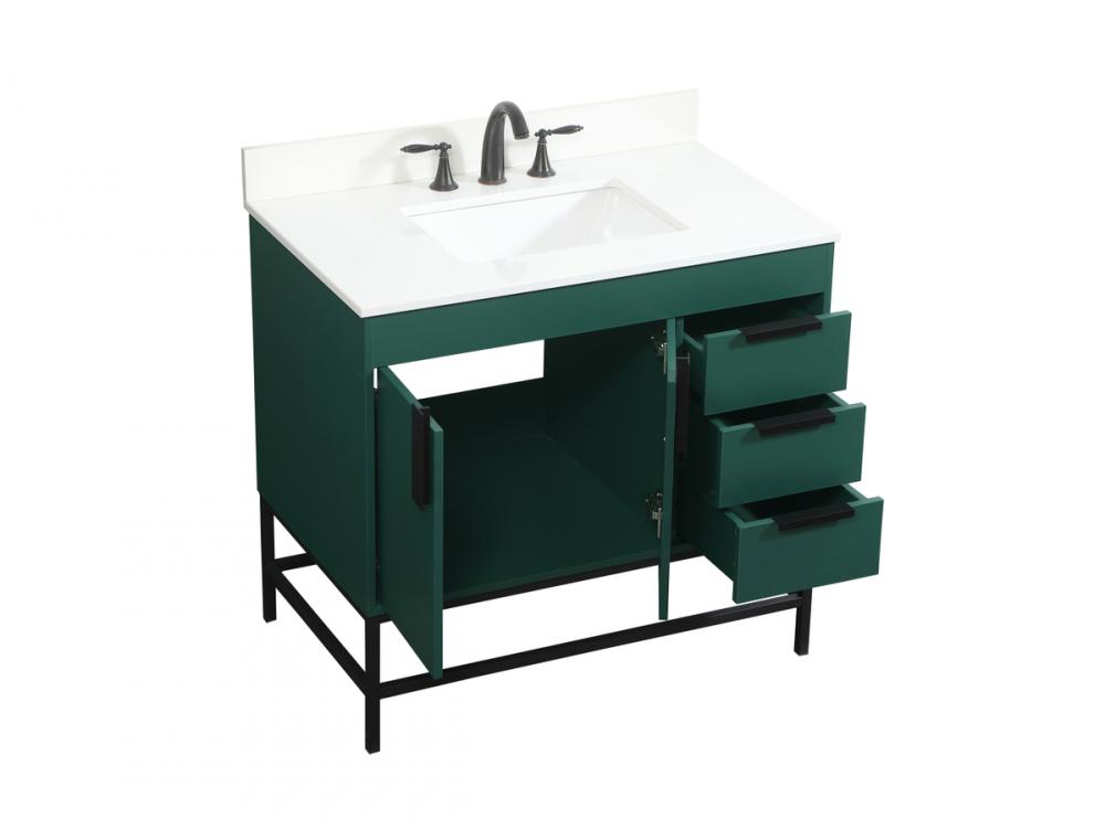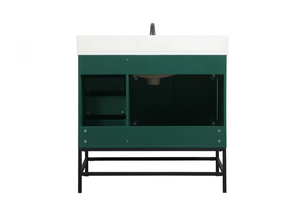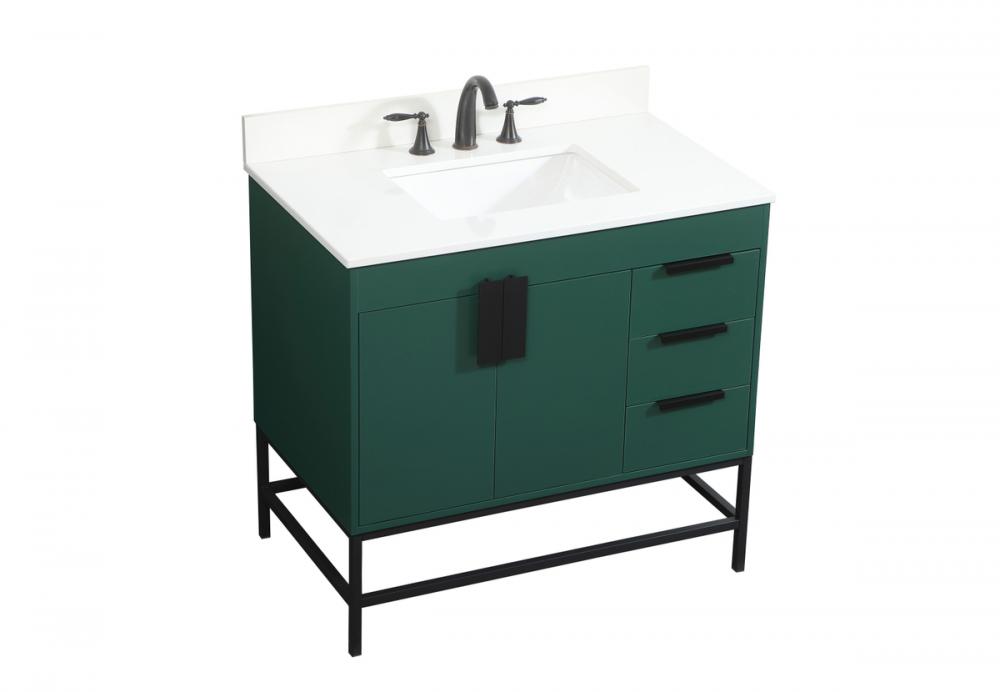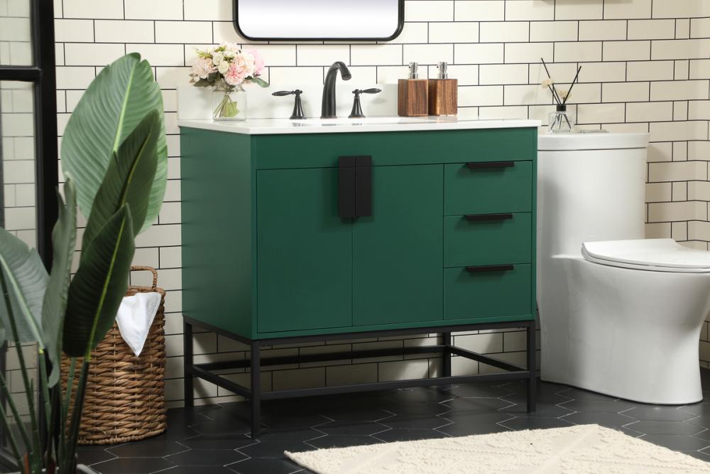 This vanity is a sleek-looking piece of bathroom furniture that is easy to incorporate into your design scheme. The cabinet features a smooth door panel with an oversized steel handle and soft close hinges provide ample room for accessories. Constructed of engineered wood, the powder-coated metal rod legs are an urban industrial look that we love. Minor assembly of the metal legs needed to get this vanity up and running. Comes with a matching backsplash to complete the look and protects your wall.