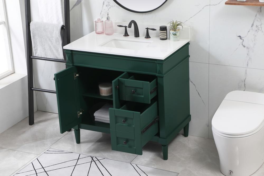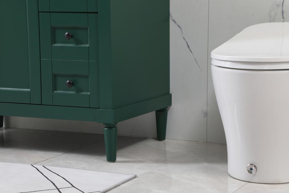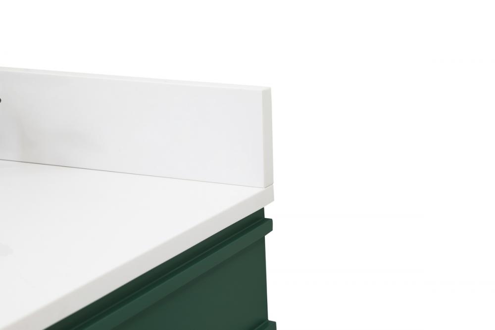 This transitional vanity is a beautiful piece of bathroom furniture will look amazing in your design scheme. The cabinet features a shaker style smooth door panel with simple round knobs and soft close hinges provide ample room for accessories. Packed with multiple side drawers with soft close glides for added comfort and full access to bath supplies. Convenient deep drawer stores all of your tall bath essentials. Constructed of engineered wood and solid wood legs with hand painted finish. The durable engineered marble countertop is a versatile material in an ivory white finish. Minor assembly of the legs needed to get this vanity up and running. Comes with a matching backsplash to complete the look and protects your wall.