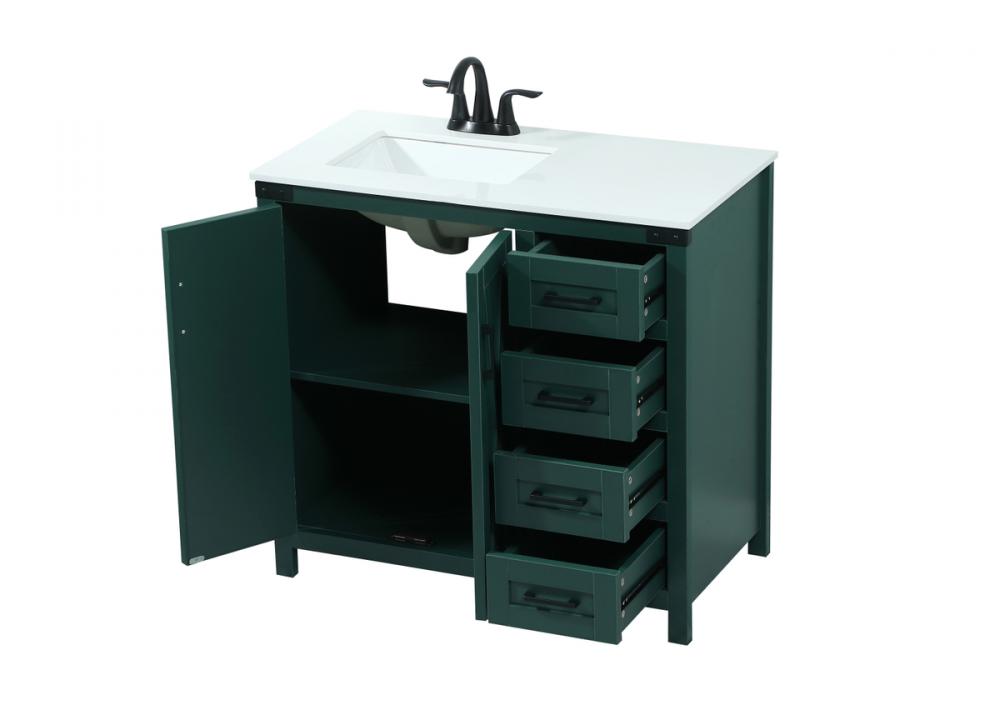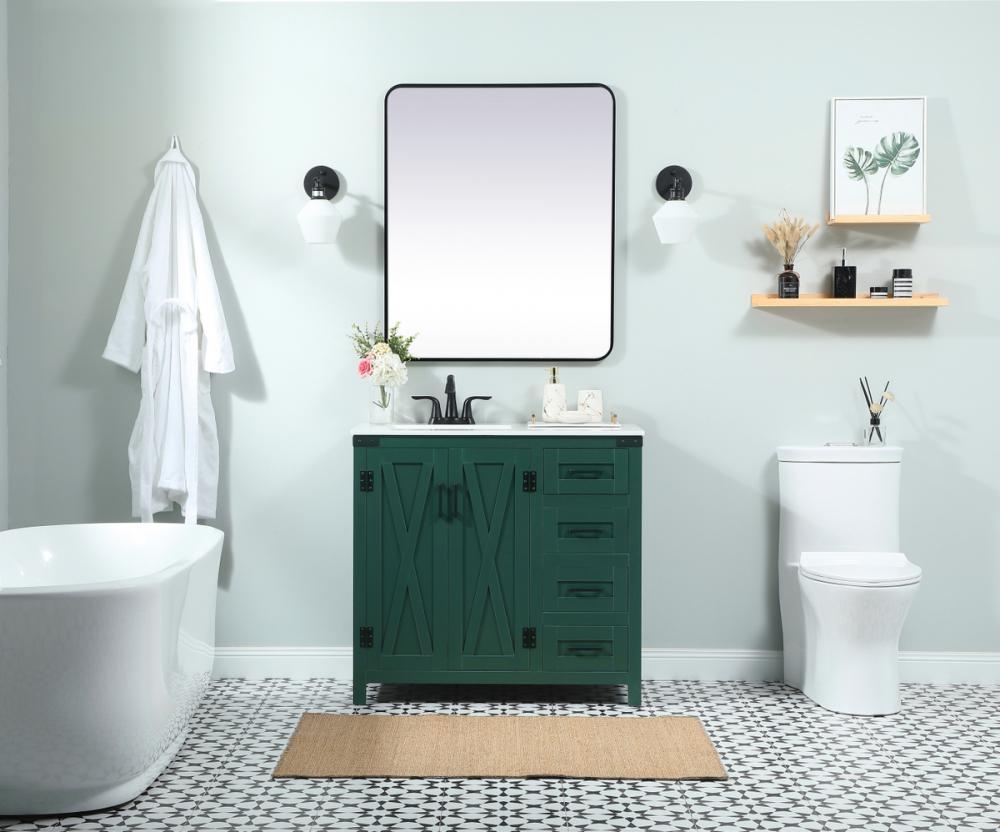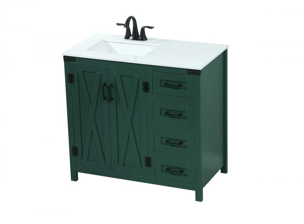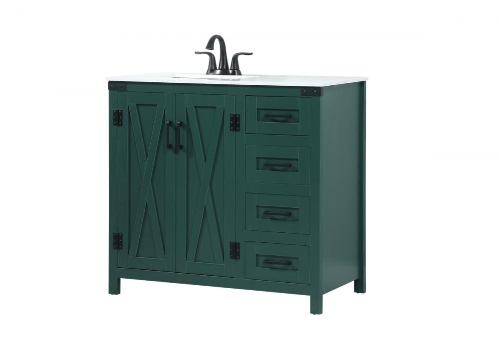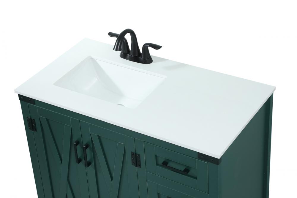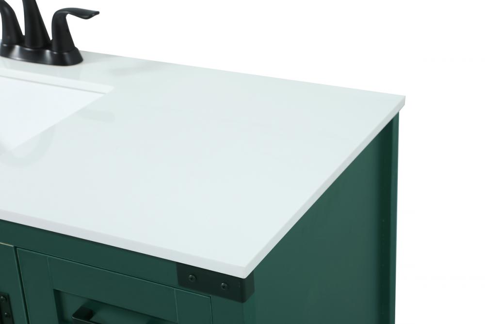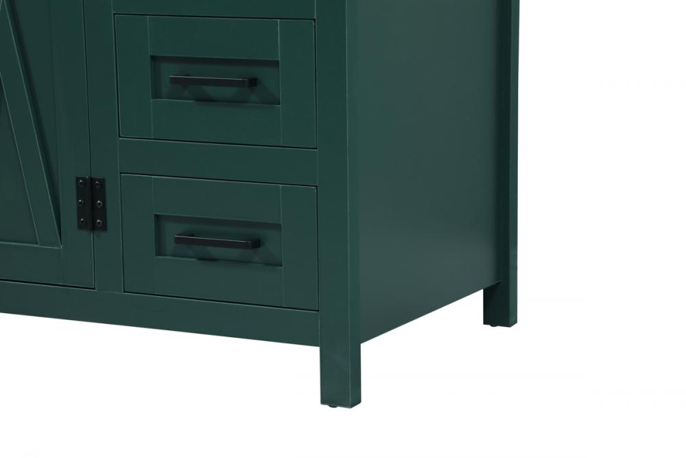 Reminiscent of barn doors, the two door cabinet and four drawers adds both stylistic charm and function with its plethora of storage options for all your bathroom essentials. Whether for your bathroom or the guests', everyone will marvel at its classic look for traditional and farmhouse aesthetics. A slab of engineered marble rounds out the piece up top, as well as the porcelain under mount sink and predrilled faucet holes. This vanity arrives fully assembled.