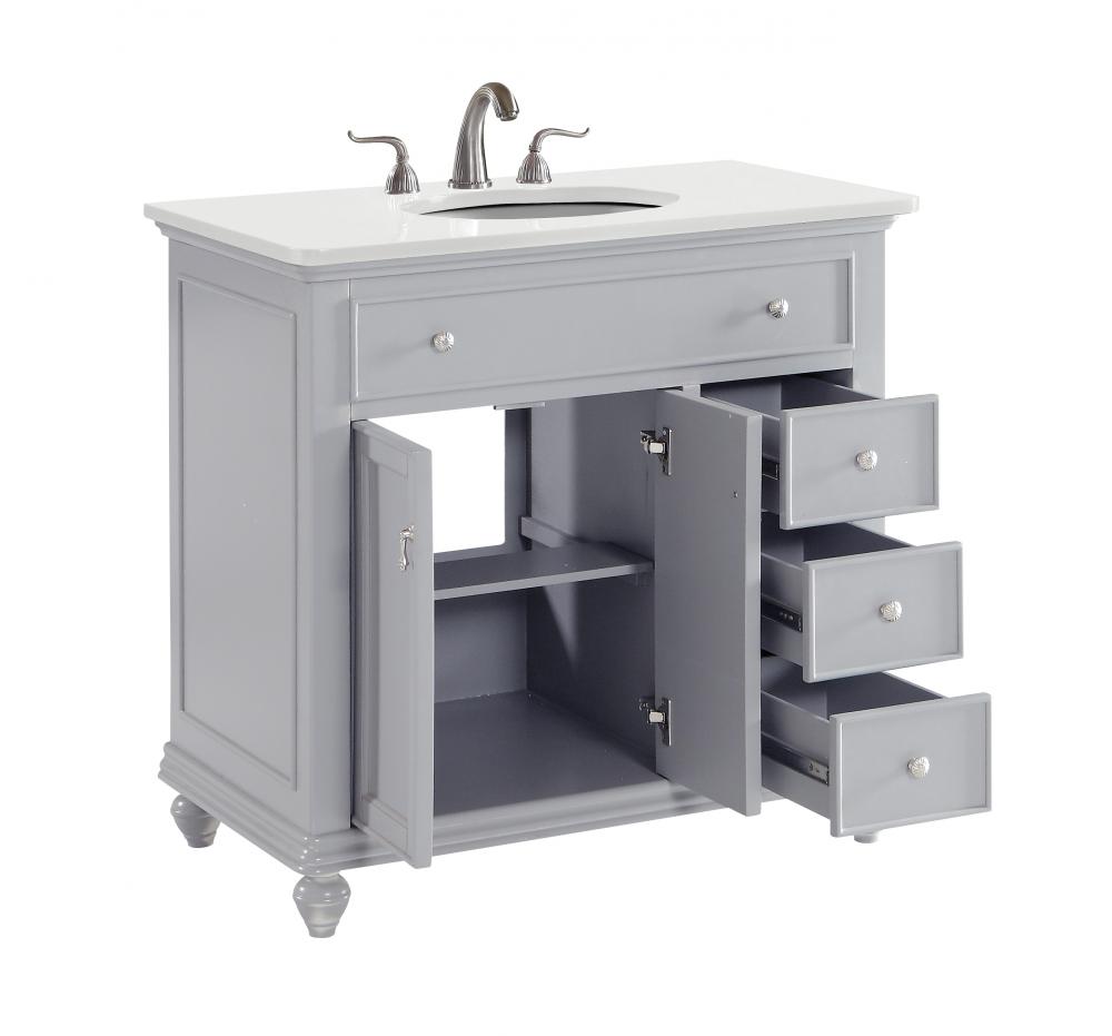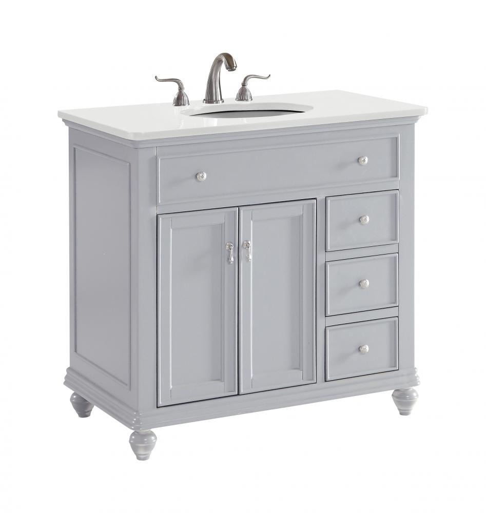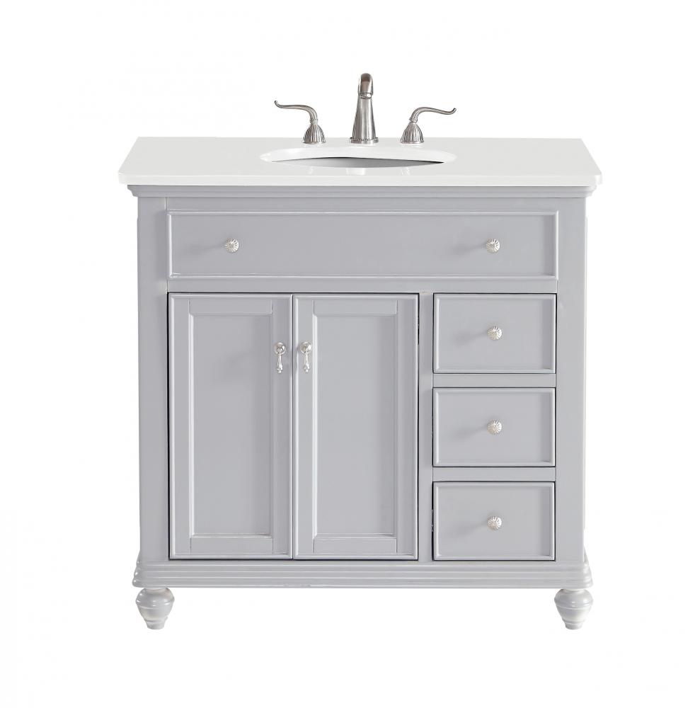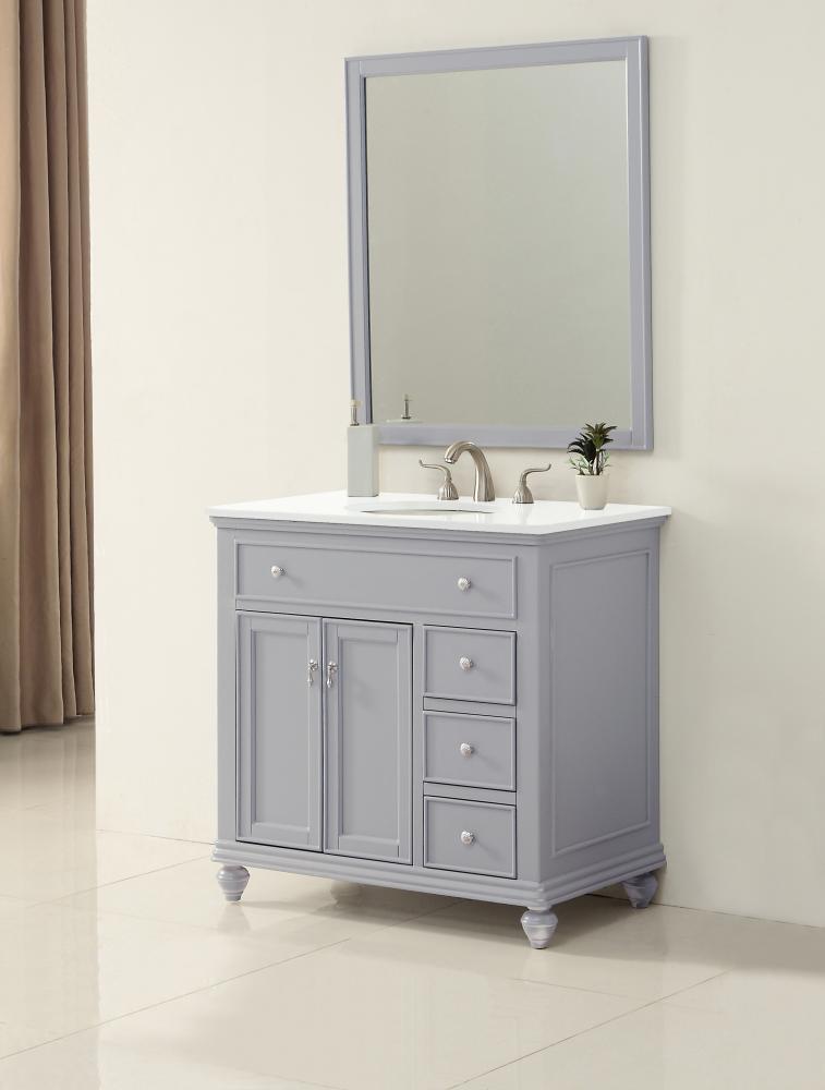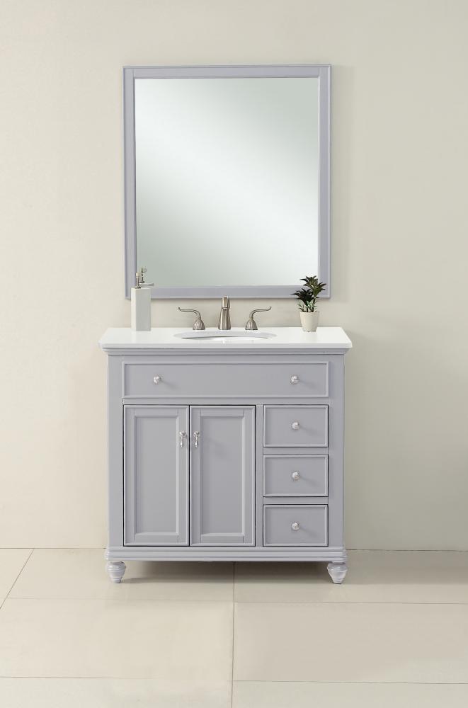 36 inch Single Bathroom vanity in Light Grey with ivory white engineered marble