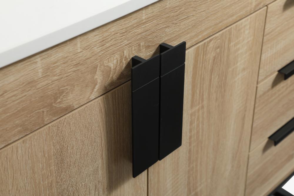 Oversized modern handles accentuates the smooth mdf wood base