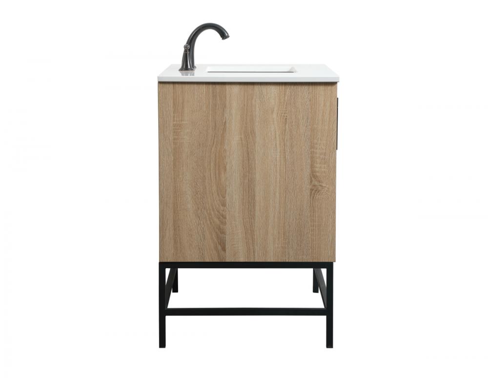 This vanity is a sleek-looking piece of bathroom furniture that is easy to incorporate into your design scheme. The cabinet features a smooth door panel with an oversized steel handle and soft close hinges provide ample room for accessories. Constructed of engineered wood, the powder-coated metal rod legs are an urban industrial look that we love. Minor assembly of the metal legs needed to get this vanity up and running.