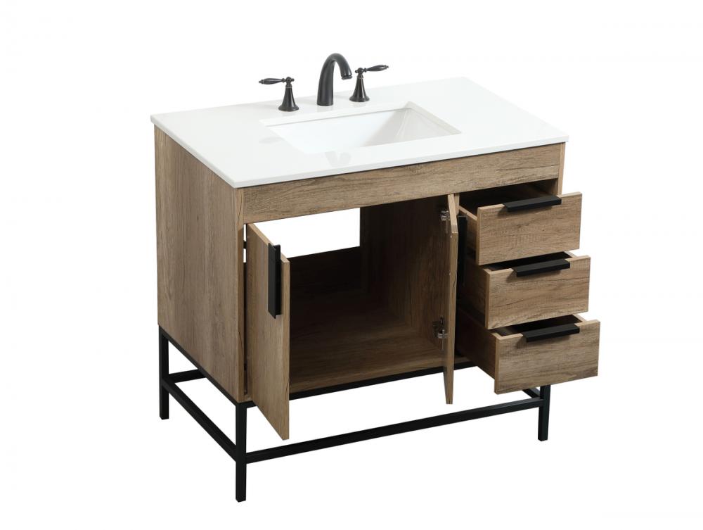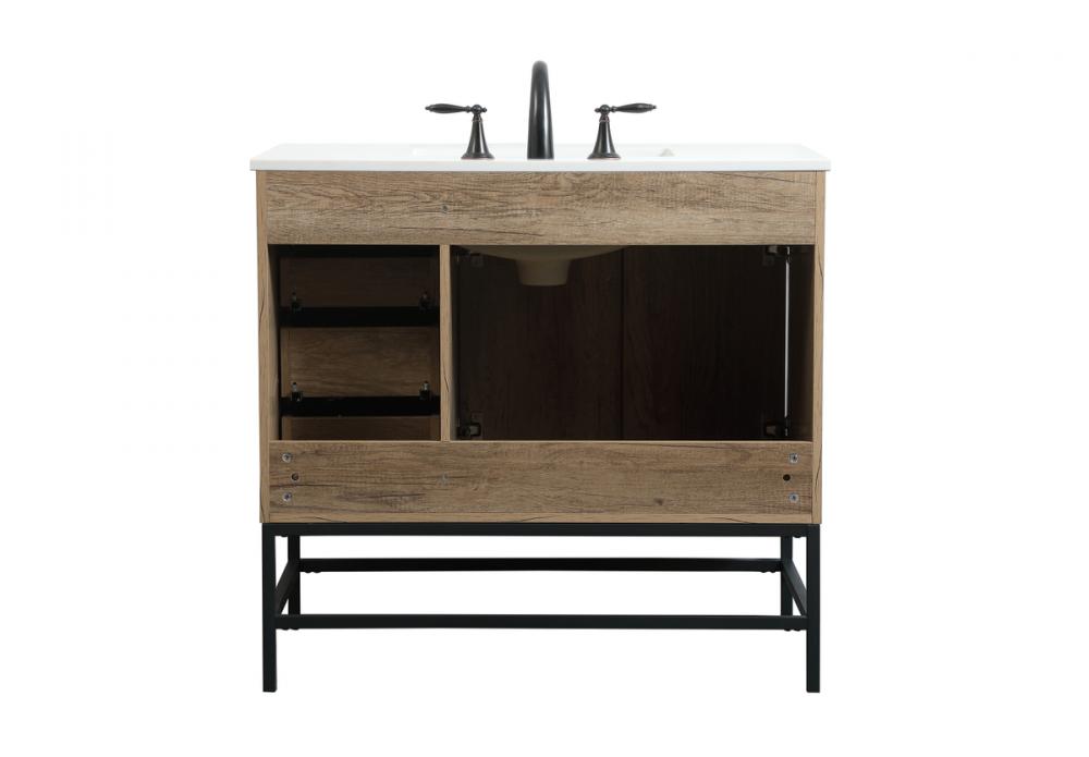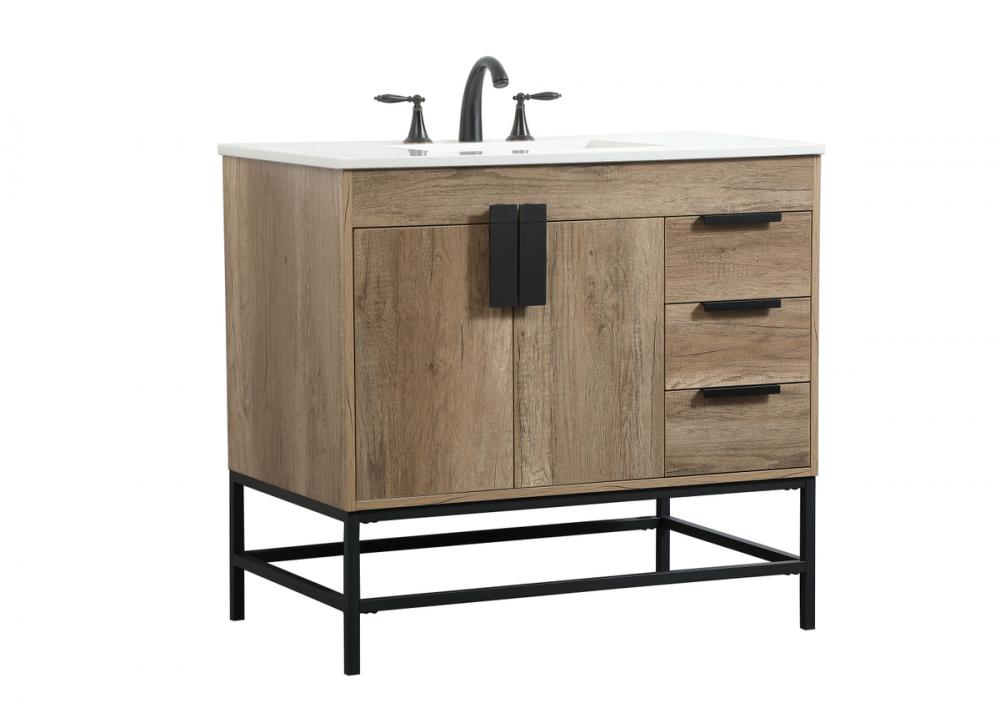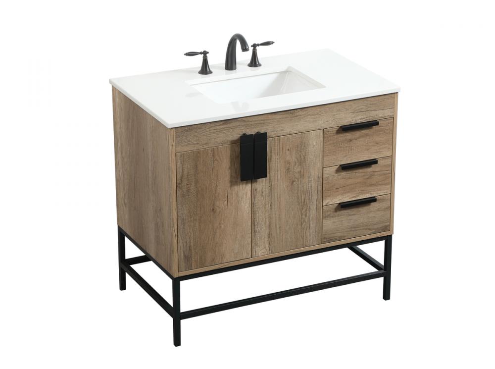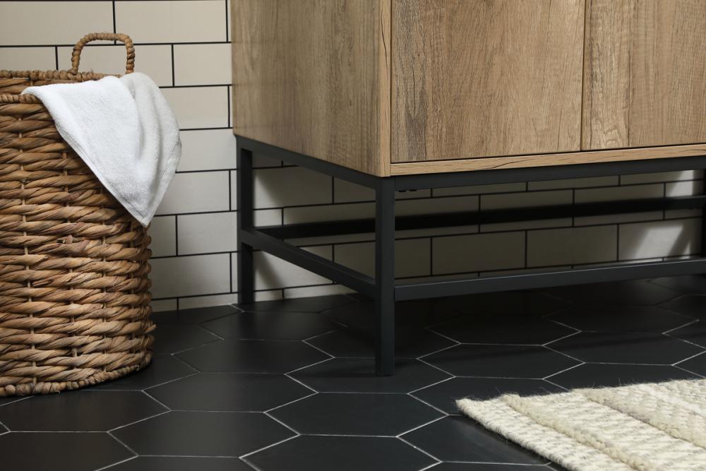 This vanity is a sleek-looking piece of bathroom furniture that is easy to incorporate into your design scheme. The cabinet features a smooth door panel with an oversized steel handle and soft close hinges provide ample room for accessories. Constructed of engineered wood, the powder-coated metal rod legs are an urban industrial look that we love. Minor assembly of the metal legs needed to get this vanity up and running.