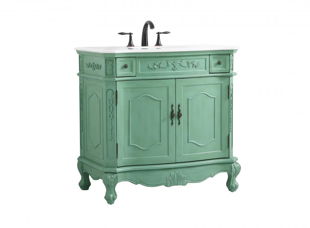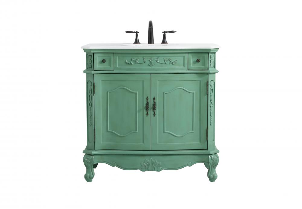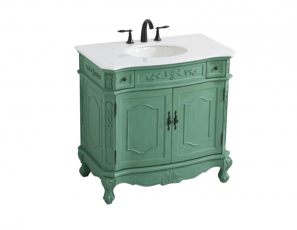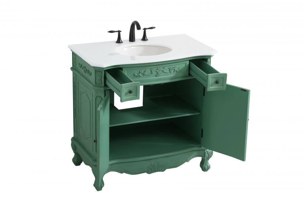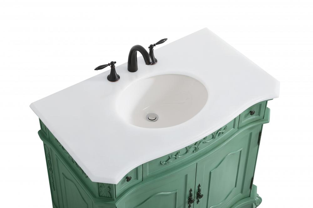 36 inch Single Bathroom vanity in vintage mint with ivory white engineered marble