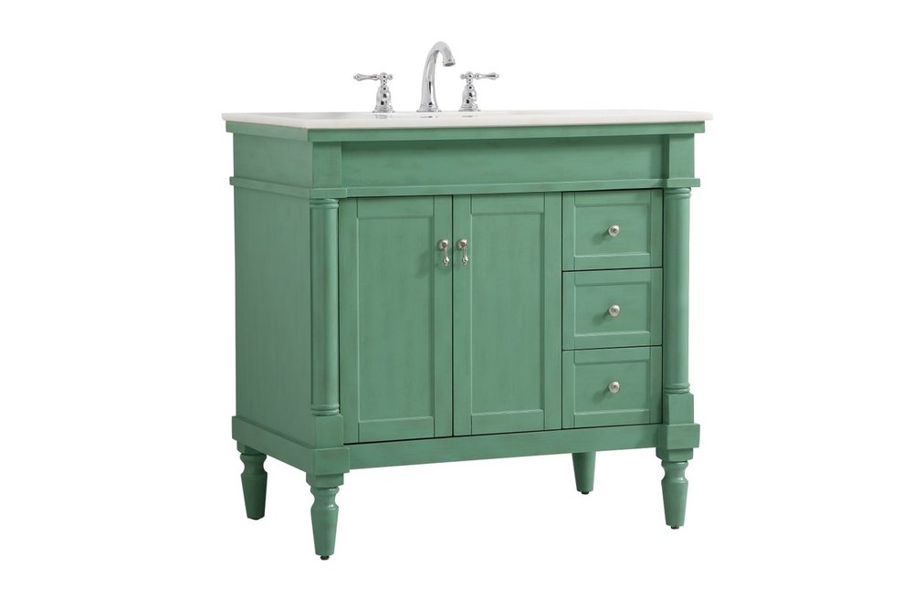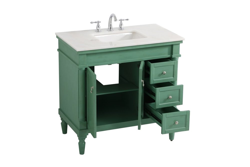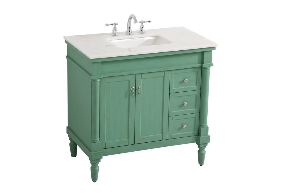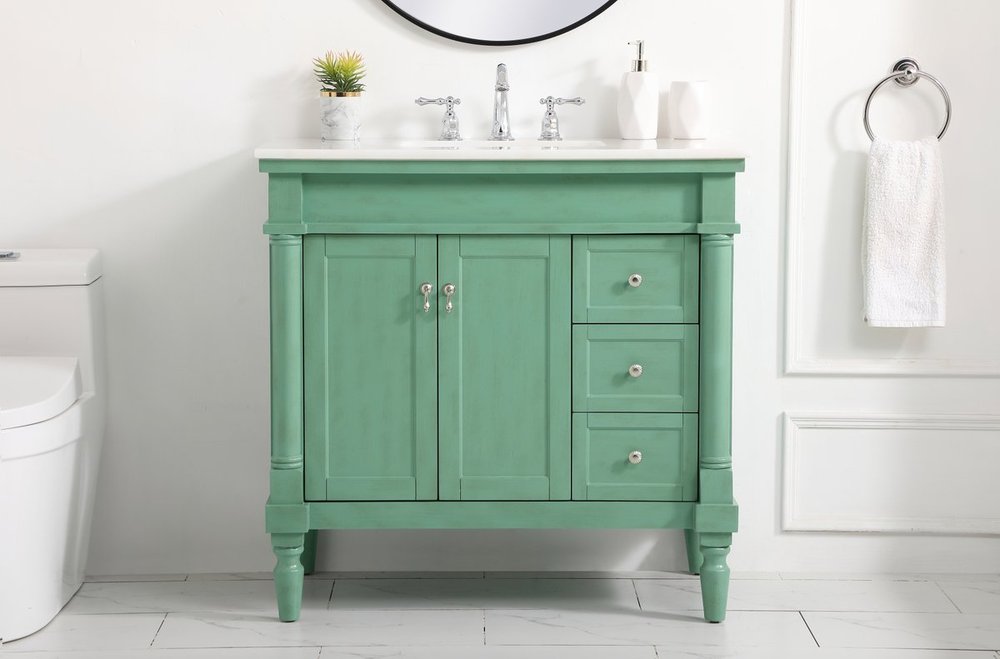 Comes with an off-white marble top with slight brown veining and straight edge design, please note that due to the natural characteristics of the stone, the color and/or pattern of each countertop may vary from the pictures.