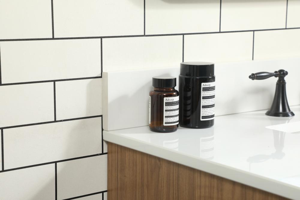 36 inch Single bathroom vanity in walnut brown with backsplash