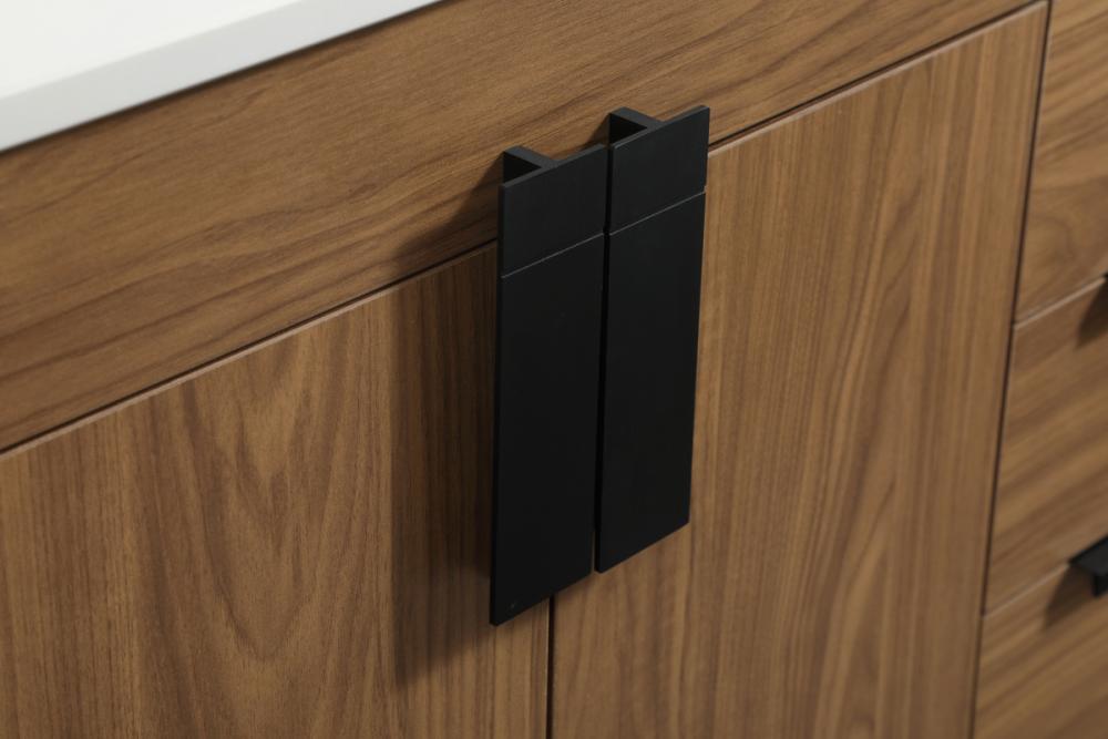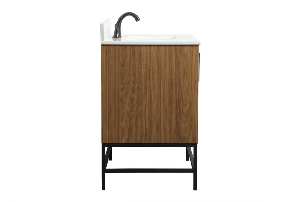 This vanity is a sleek-looking piece of bathroom furniture that is easy to incorporate into your design scheme. The cabinet features a smooth door panel with an oversized steel handle and soft close hinges provide ample room for accessories. Constructed of engineered wood, the powder-coated metal rod legs are an urban industrial look that we love. Minor assembly of the metal legs needed to get this vanity up and running. Comes with a matching backsplash to complete the look and protects your wall.