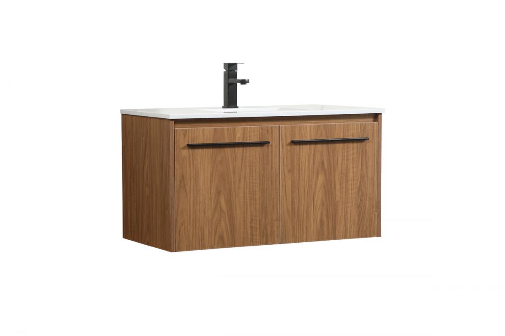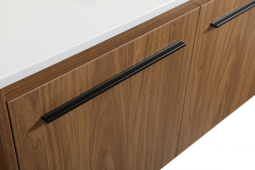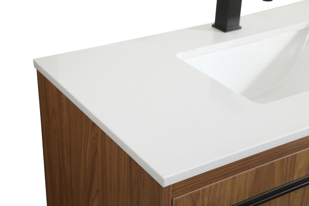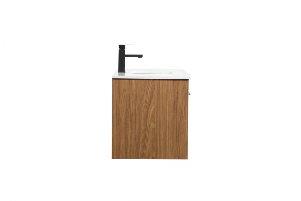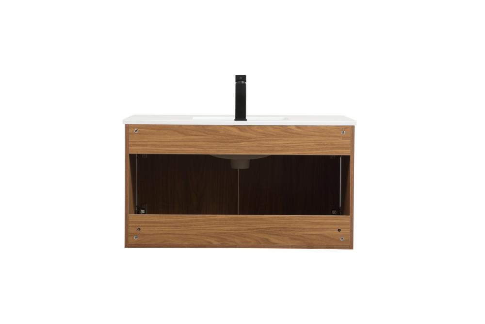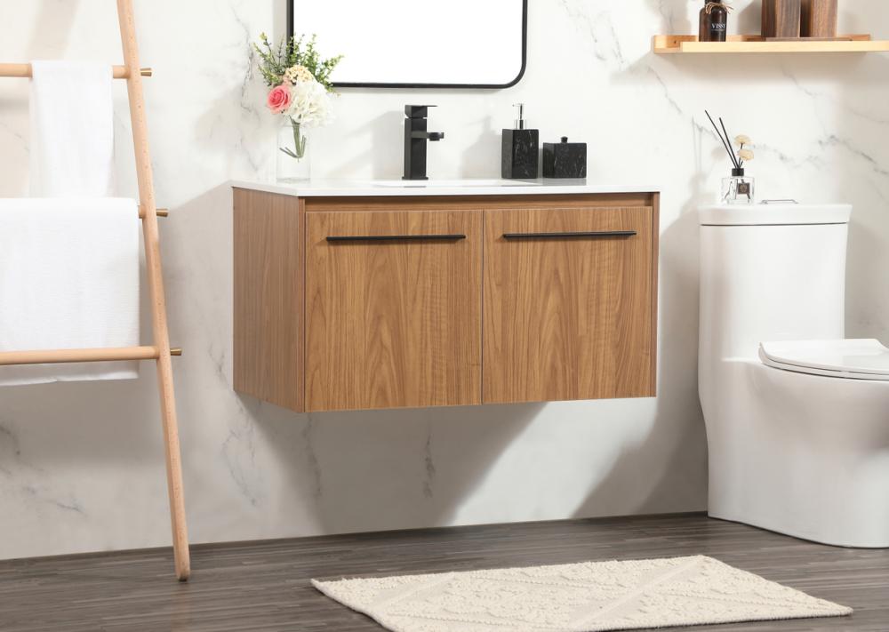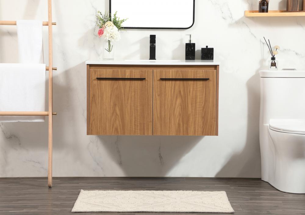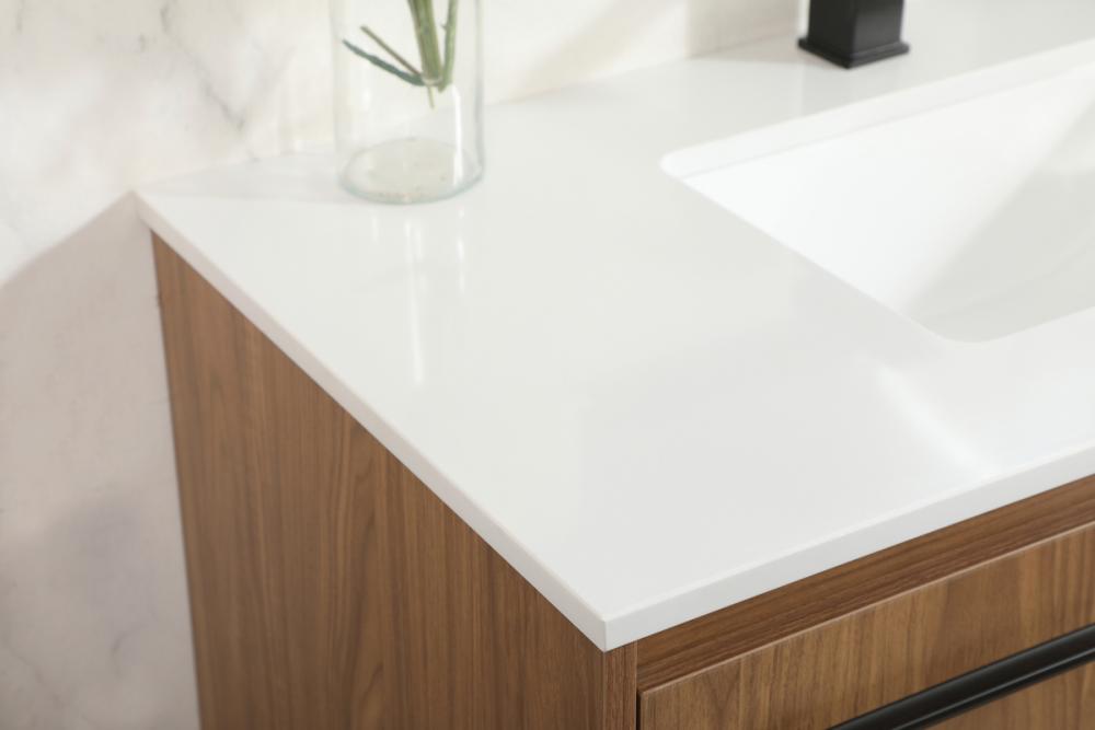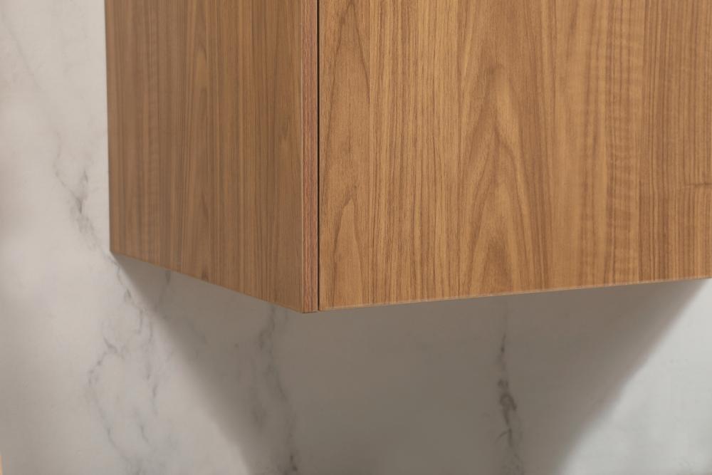 Save space and make your bathroom appear bigger with this floating vanity that comes in several finishes. Its minimal design will have you in awe, while its clean lines will leave your room feeling fresh and uncluttered. The Single cabinet opens with soft closing doors that allows for storage to place extra towels or various other essentials. Its low maintenance and durable engineered marble top will surely last through many washes.