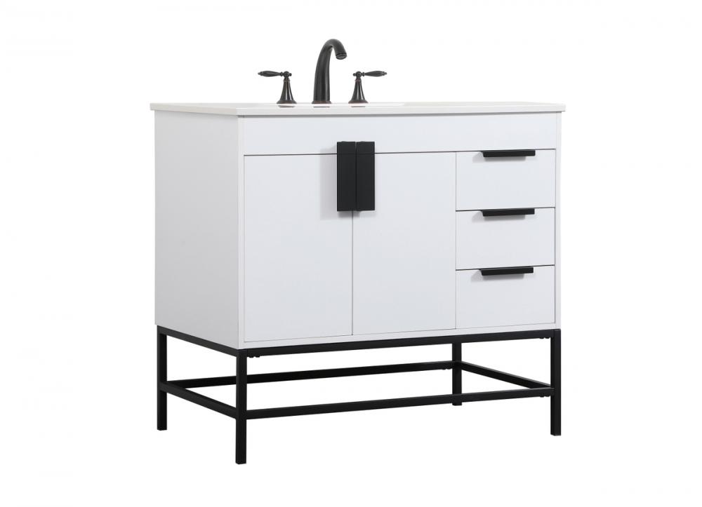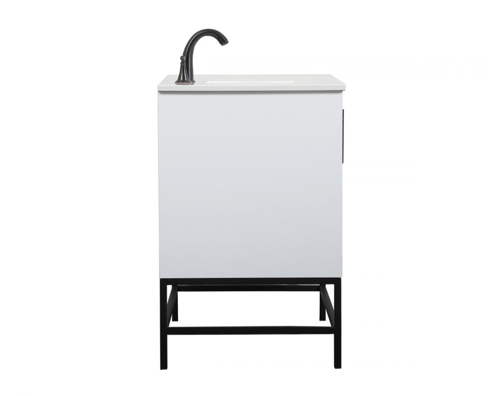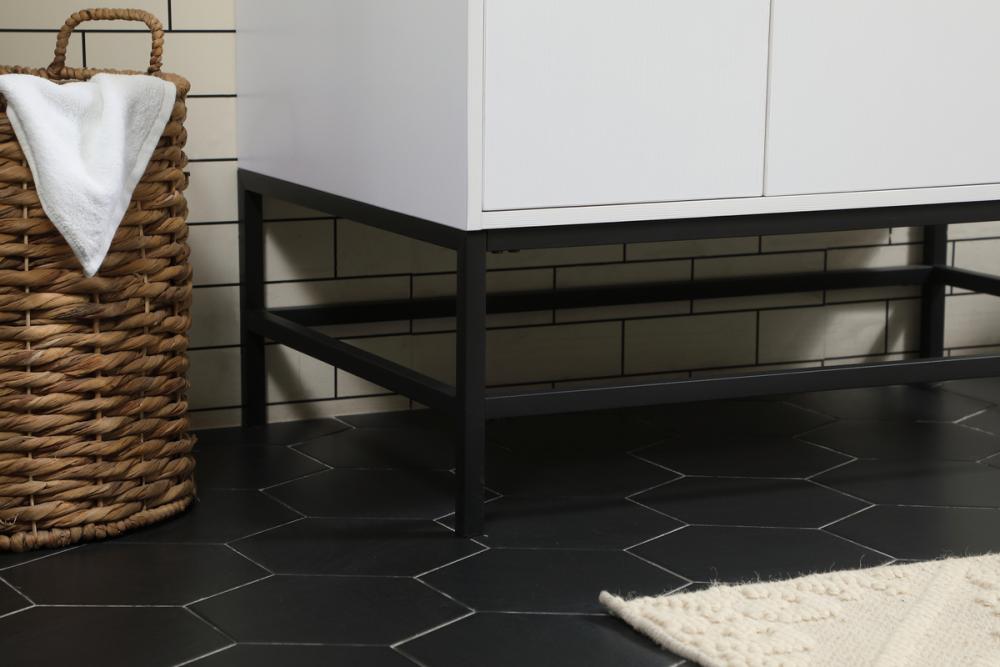 This vanity is a sleek-looking piece of bathroom furniture that is easy to incorporate into your design scheme. The cabinet features a smooth door panel with an oversized steel handle and soft close hinges provide ample room for accessories. Constructed of engineered wood, the powder-coated metal rod legs are an urban industrial look that we love. Minor assembly of the metal legs needed to get this vanity up and running.