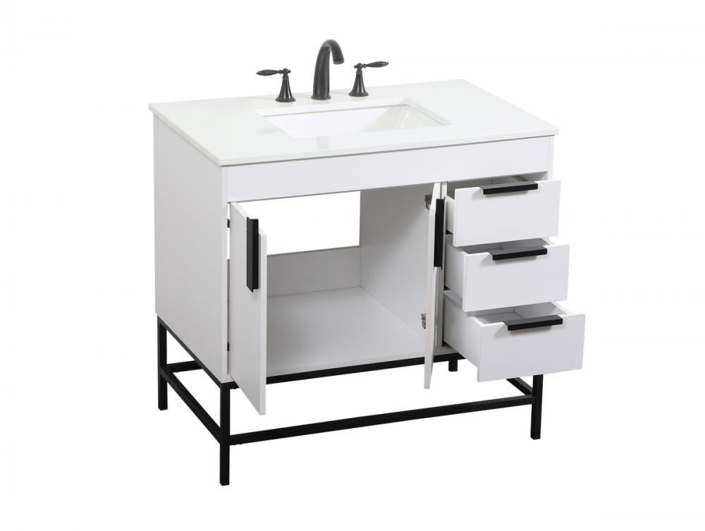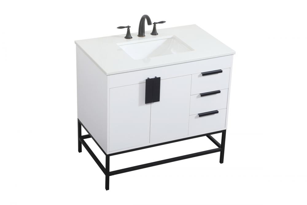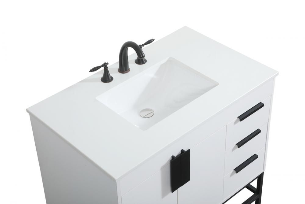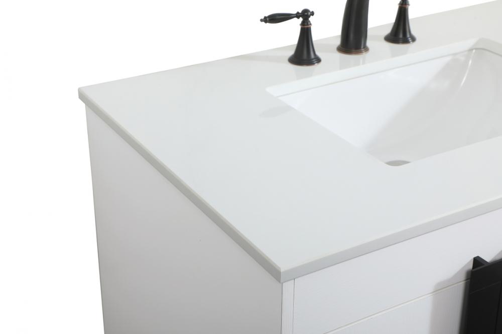 Crafted with durable engineered marble top in ivory white finish