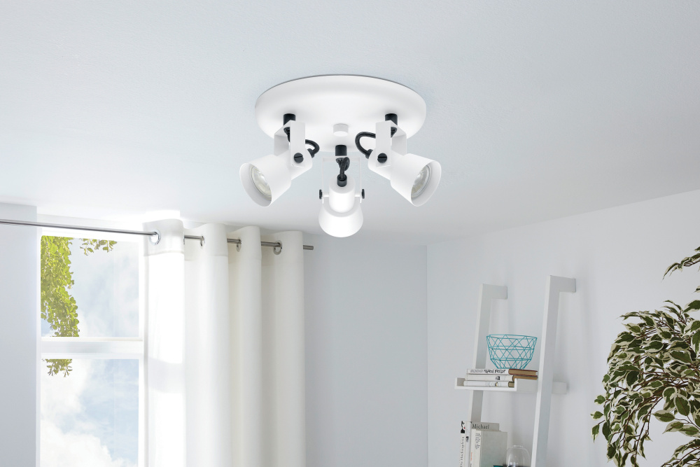 3 LT Circular Ceiling Track Light w/ White & Black Finish w/ White Adjustable Lamp Heads