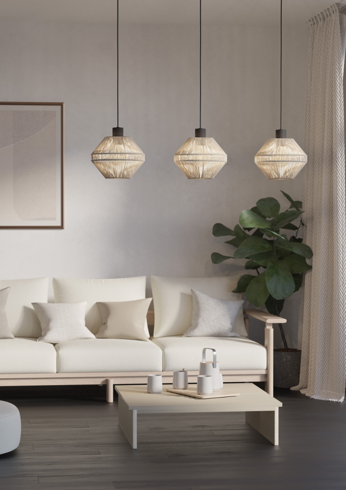 3 LT Linear Pendant w/ Black Finish & Cream JuteTextile Shades