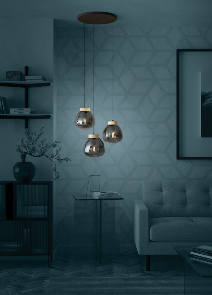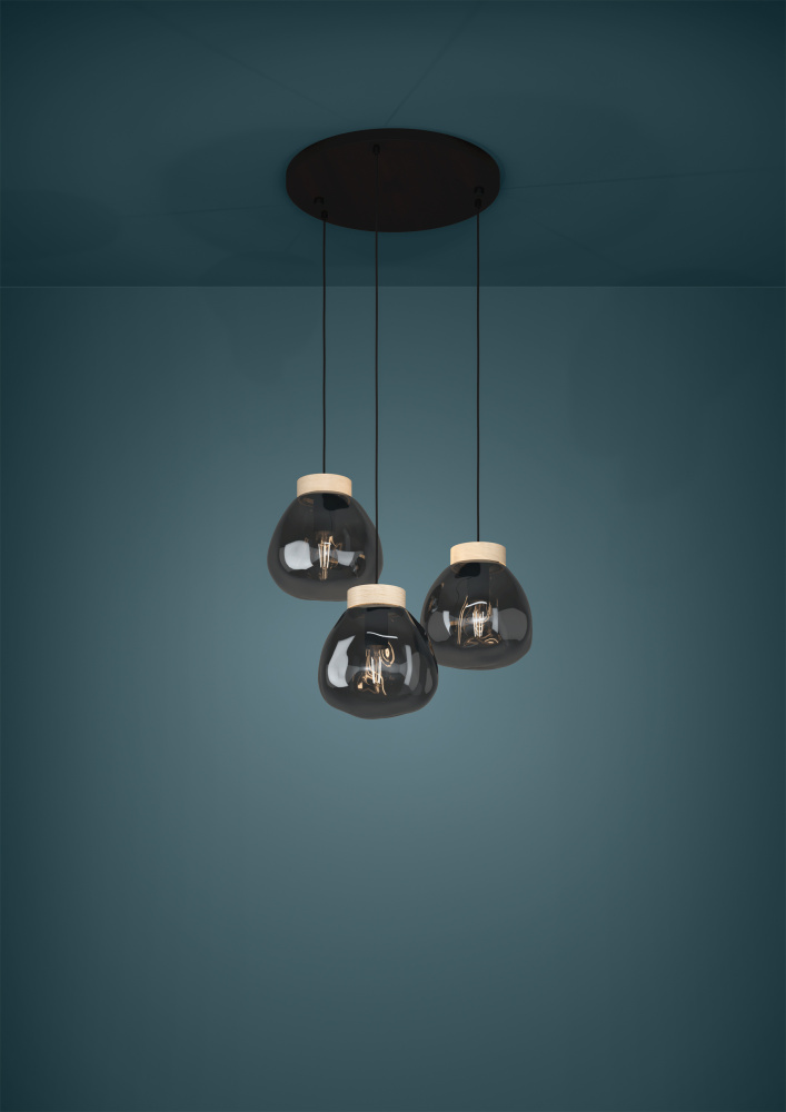 3 LT Cascade Pendant Black w/ Wood Accent Finish & Metallic Smoked Glass Shade