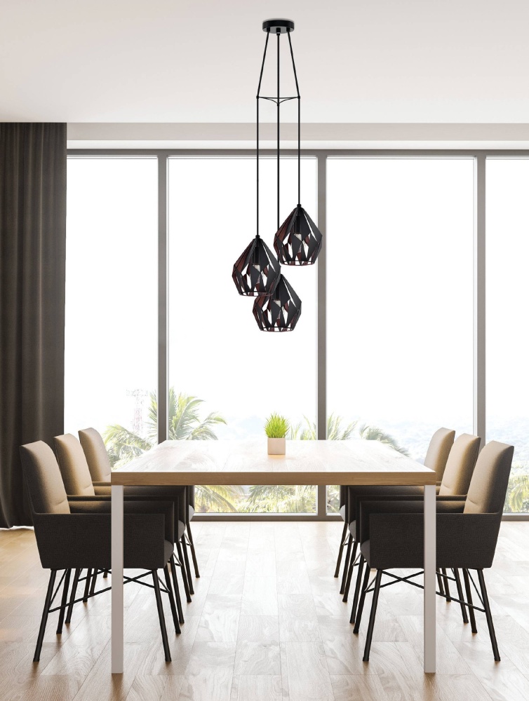 3 LT Cascade Pendant w/ Black Finish & Black & Copper Shades