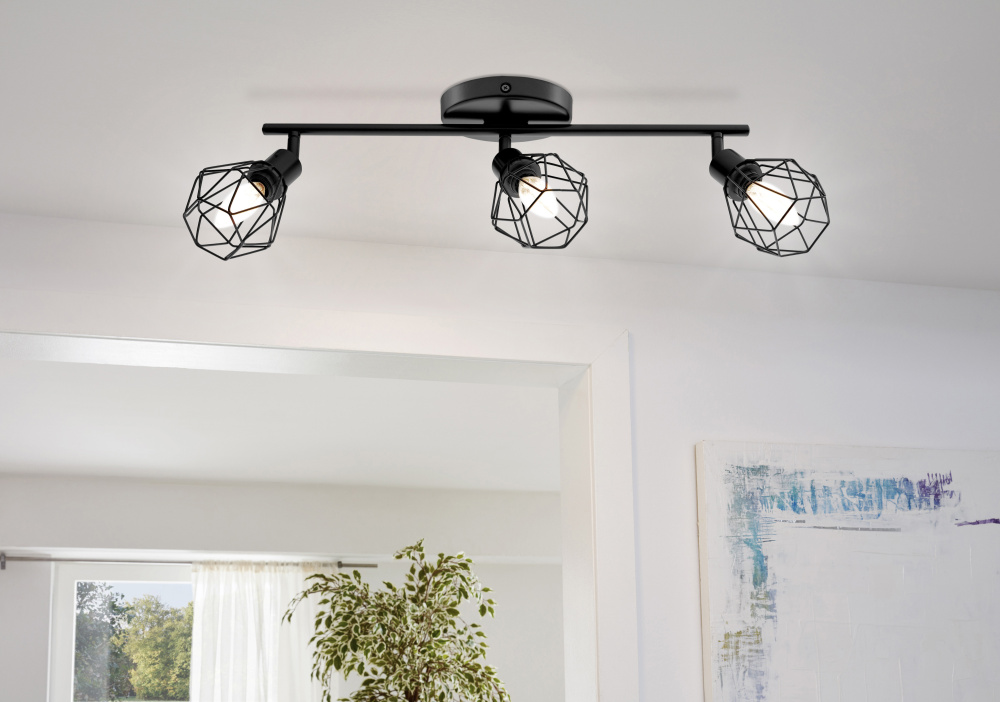 3 LT Fixed Track Light w/ Matte Black Finish & Matte Black Geometric Adjustable Shades