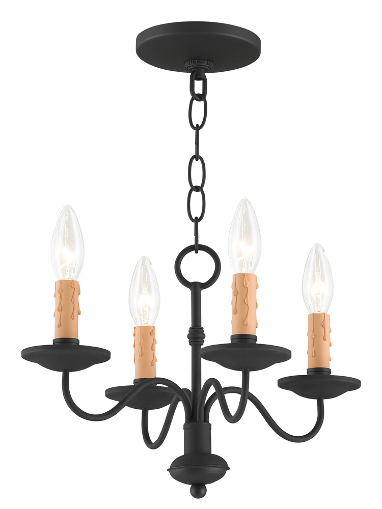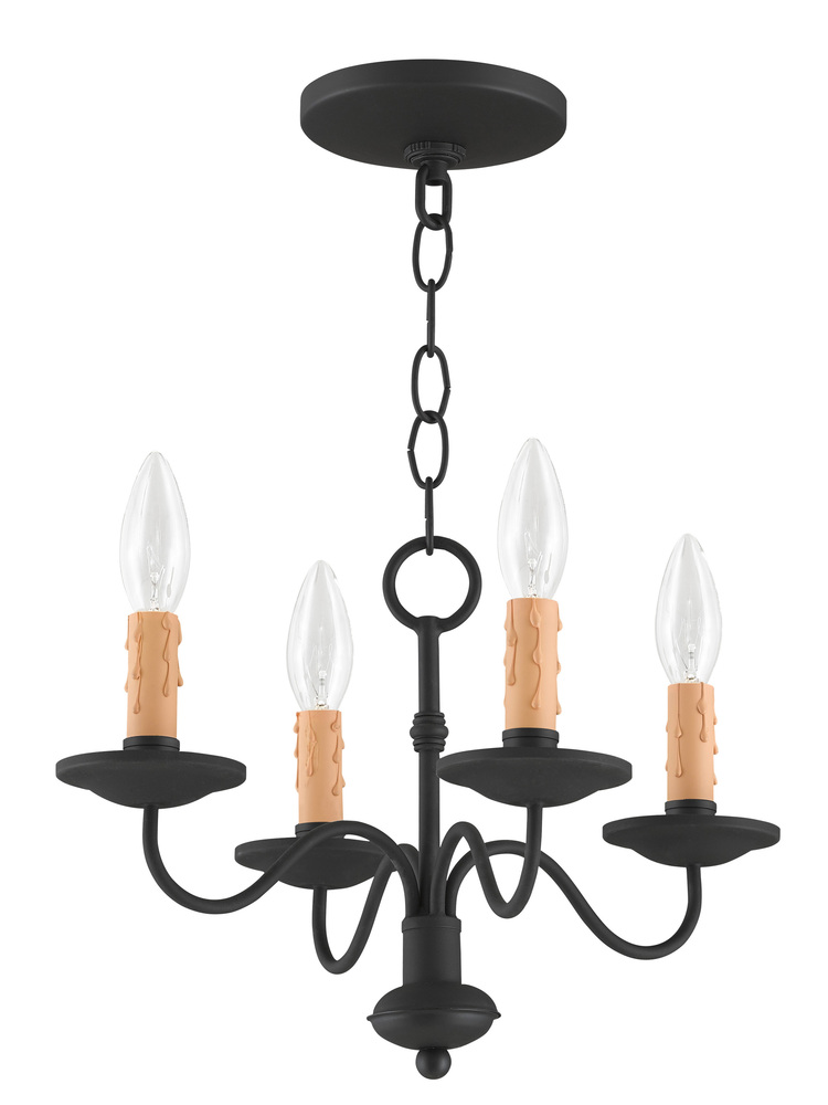 The Clean Design Of This Steel Construction Four Light Chandelier Is Enhanced With A Black Finish. The Sweeping Arms Create A Slim Silhouette From Which The Candelabra Bulbs Emit Their Soft, Romantic Glow. Its Informal, Transitional Beauty Works Well With Many Room Decor Schemes.