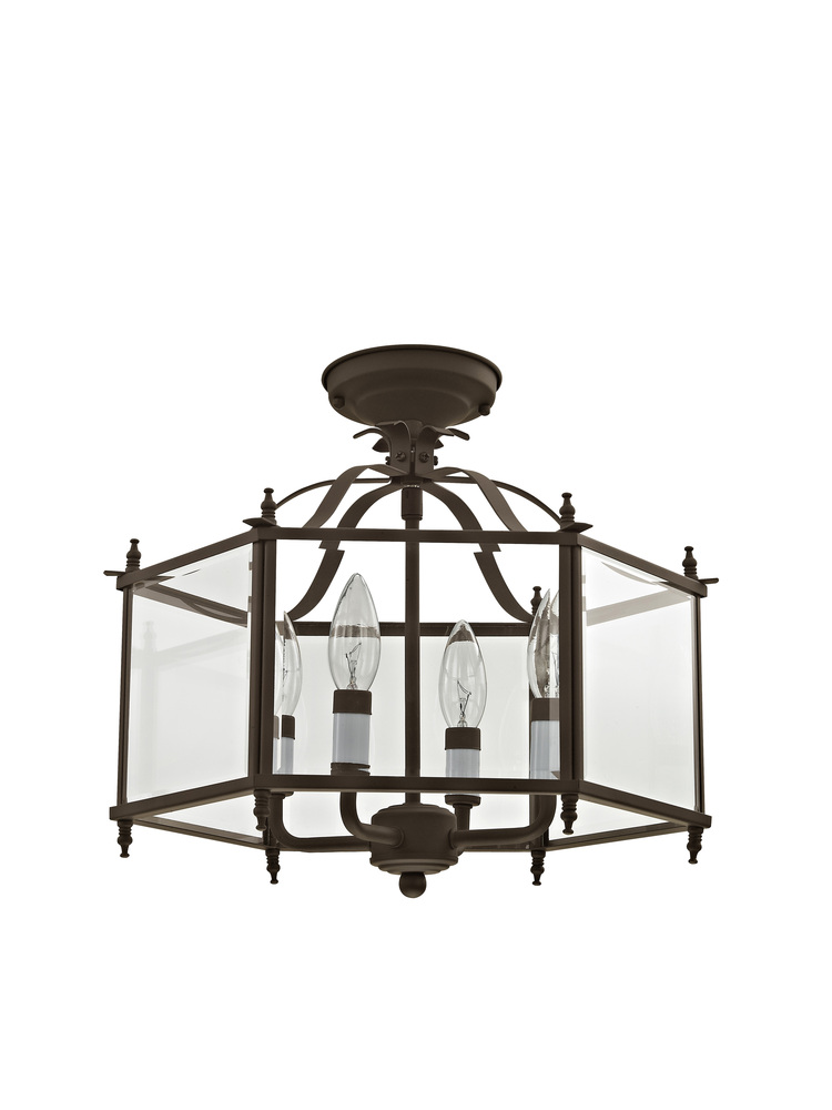 The Livingston Collection Features A Classic Six-Sided Lantern Silhouette. Bronze Finish With Clear Beveled Glass Gives The Fixture Charming Style And The Candelabra Bulbs Will Fill Your Home With Generous Amounts Of Illumination That Welcomes Your Guests. The Versatile Ixture Can Be Transformed Into Semi-Flush Ceiling Mounts.