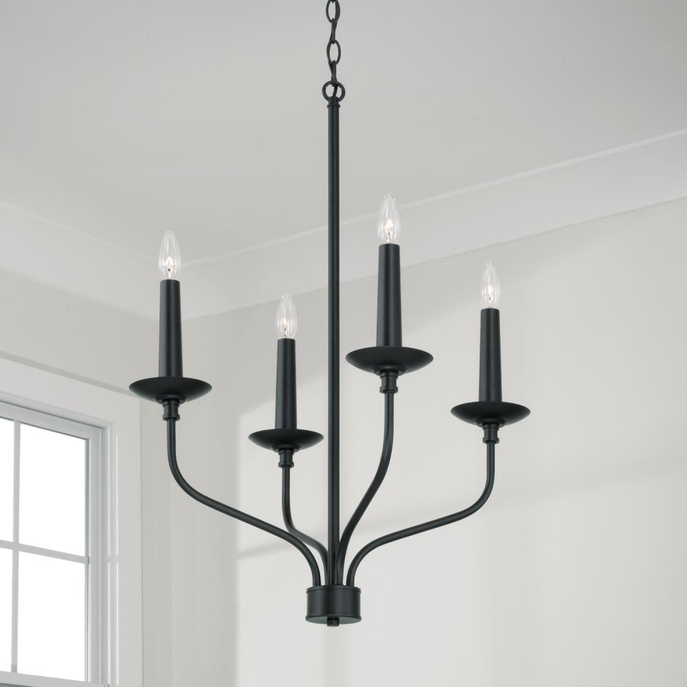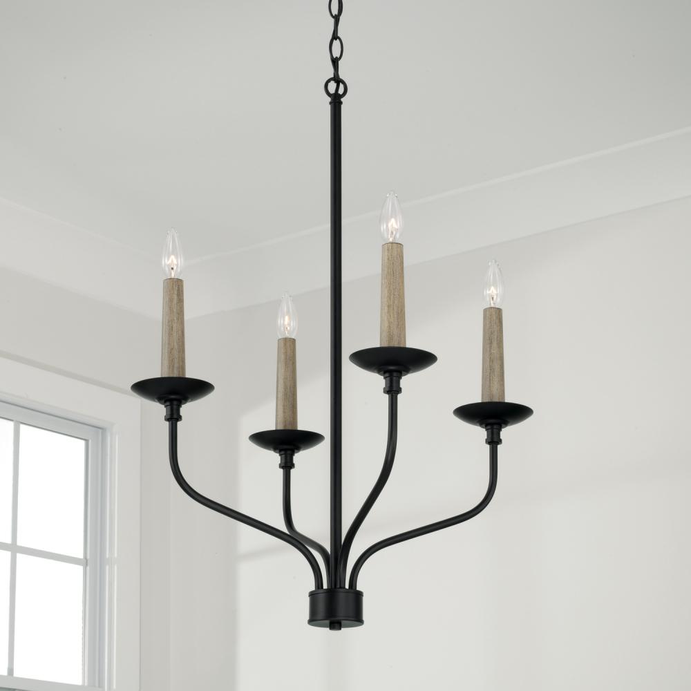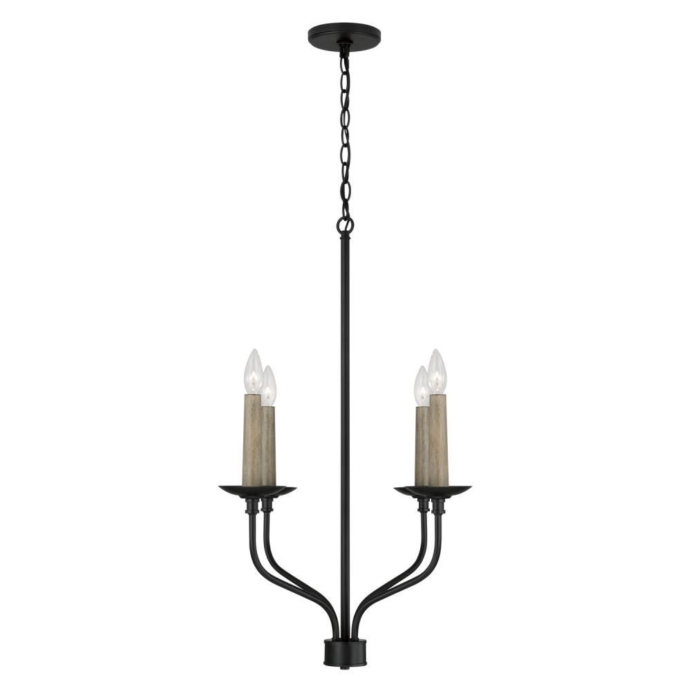 4-Light Chandelier in Matte Black with Interchangeable Faux Wood or Matte Black Candle Sleeves
