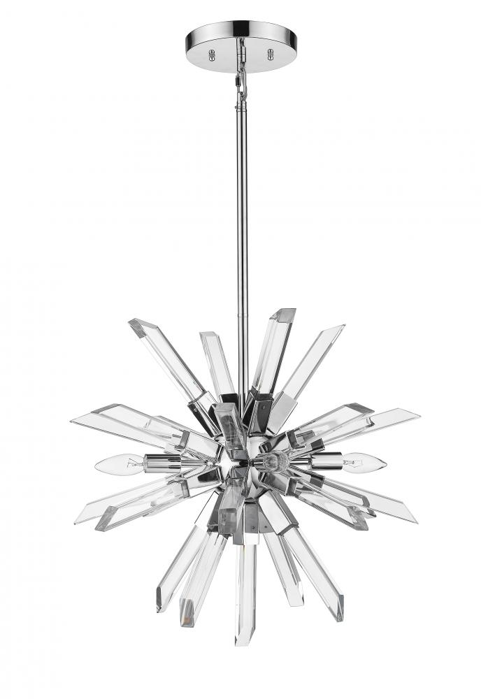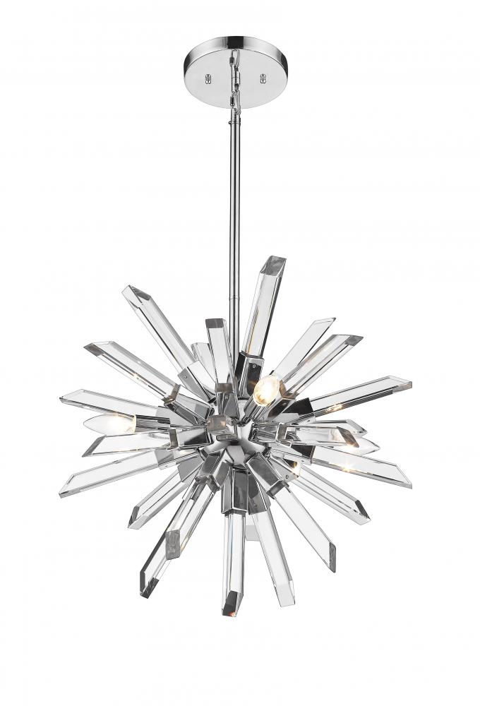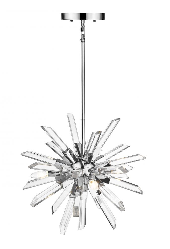 An explosion of beautiful crystal arms extend forth in the Burst collection of crystal fixtures, like stars in the night. The reflective nature of the clear crystal and sleek Chrome finishes make these fixtuers sparkle intensely.