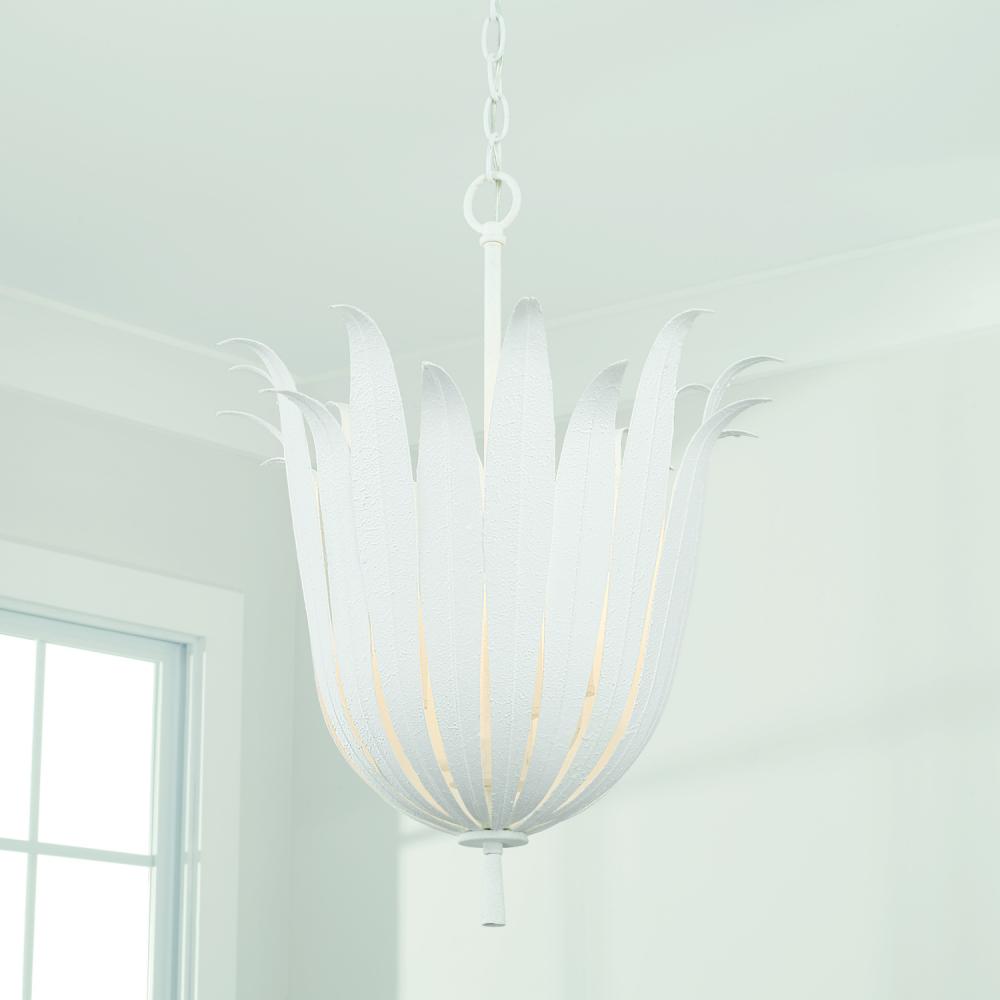 16"W x 22"H 4-Light Botanical Tall Foyer Pendant in Textured White