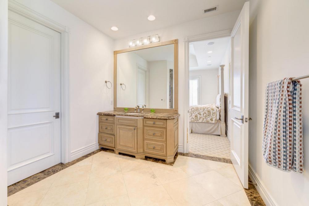 Bent frosted glass shades are hung over brushed nickel hardware on this 4 light vanity to create a modern touch for any room.