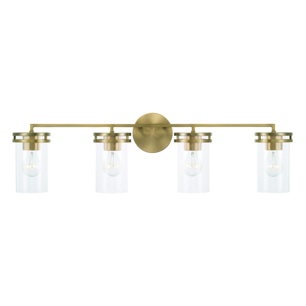 33.5"W x 9.75"H 4-Light Vanity in Aged Brass with Clear Glass
