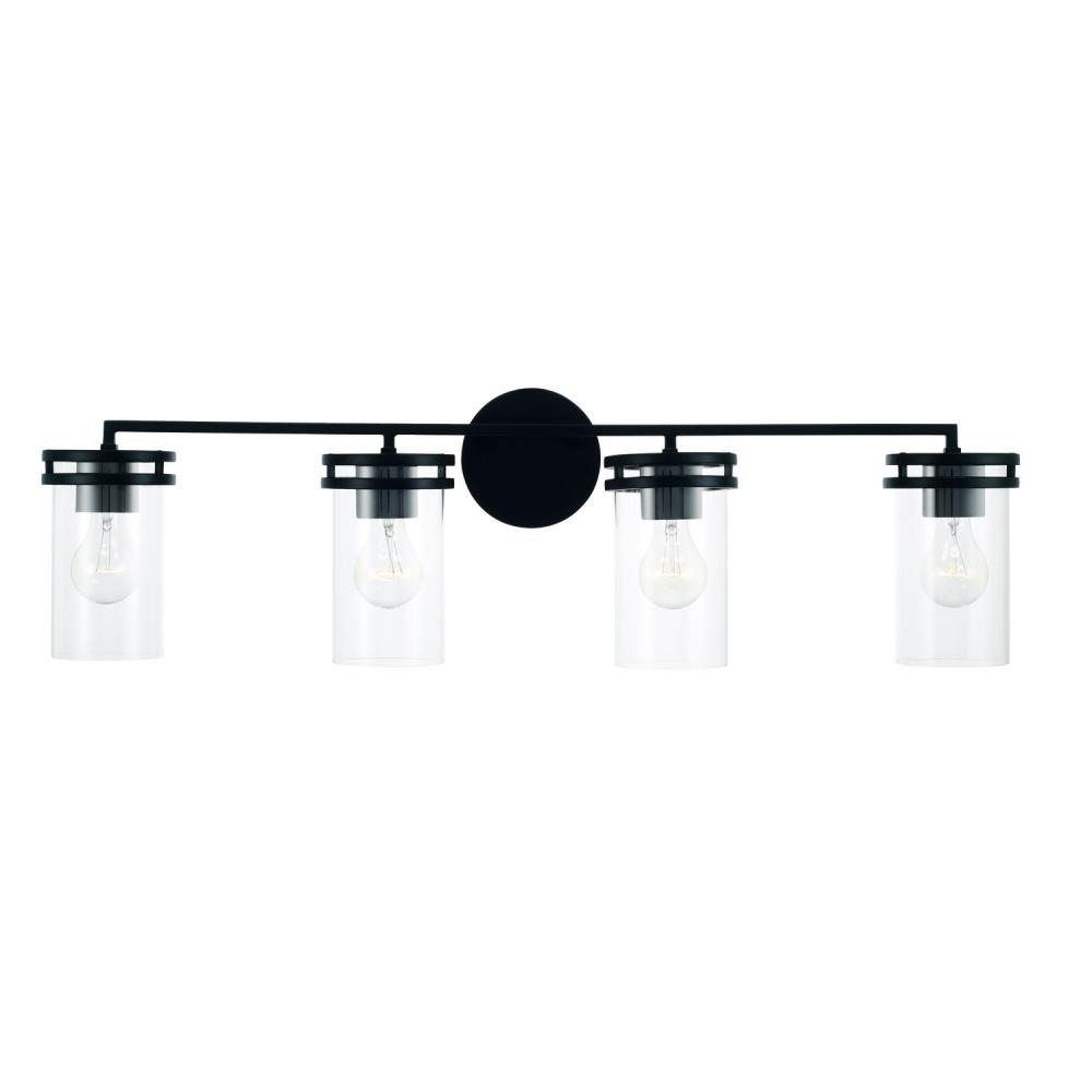 33.5"W x 9.75"H 4-Light Vanity in Matte Black with Clear Glass