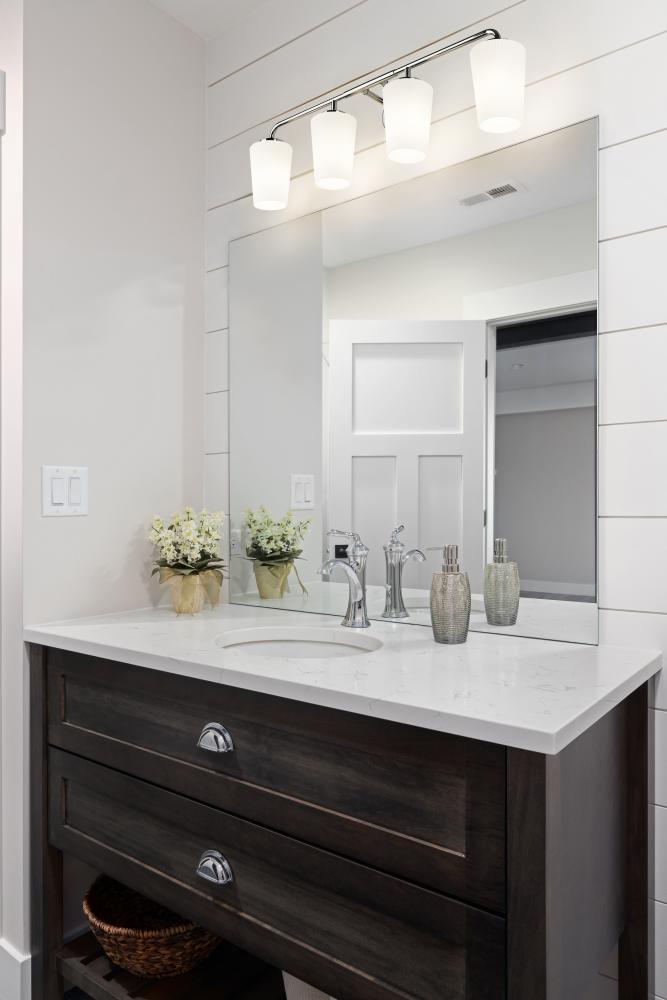 Center relaxed sophistication in your bath with this modern four-light vanity wall light. In chrome, it features a clean, simple silhouette that imparts a hint of industrial or restoration design flair. Ribbed opal glass shades are tall and tapering, creating a striking silhouette while gently diffusing illumination for all your morning and evening needs.