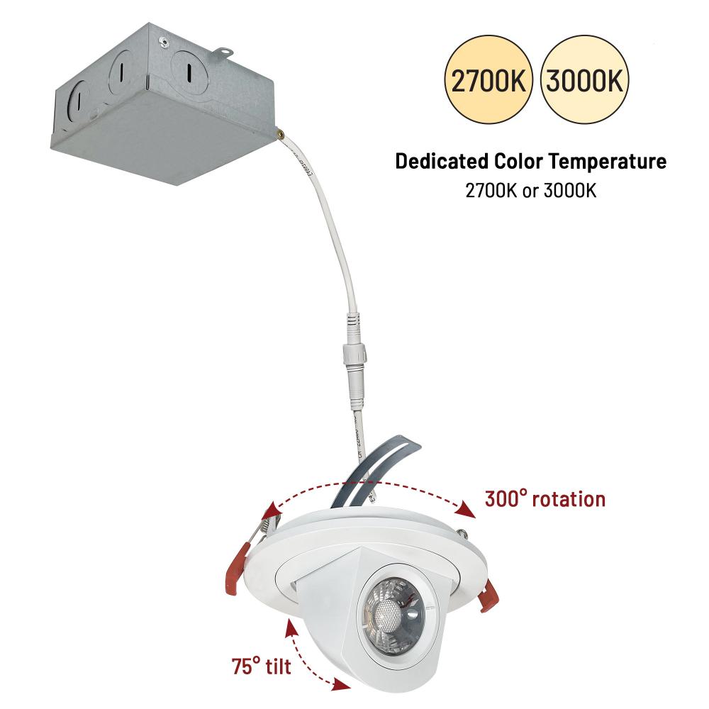 4" M4 Round LED Elbow downlight features an adjustable head that extends 75° and rotates 300° for precise aiming. Quality and convenience with easy installation for insulated or non-insulated applications. Luminaires can be configured into square trim with accessory.