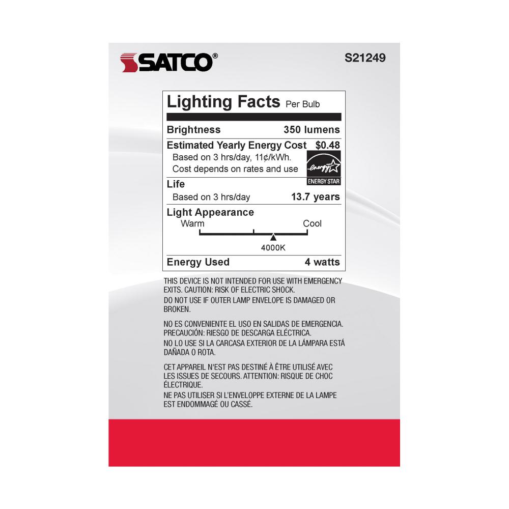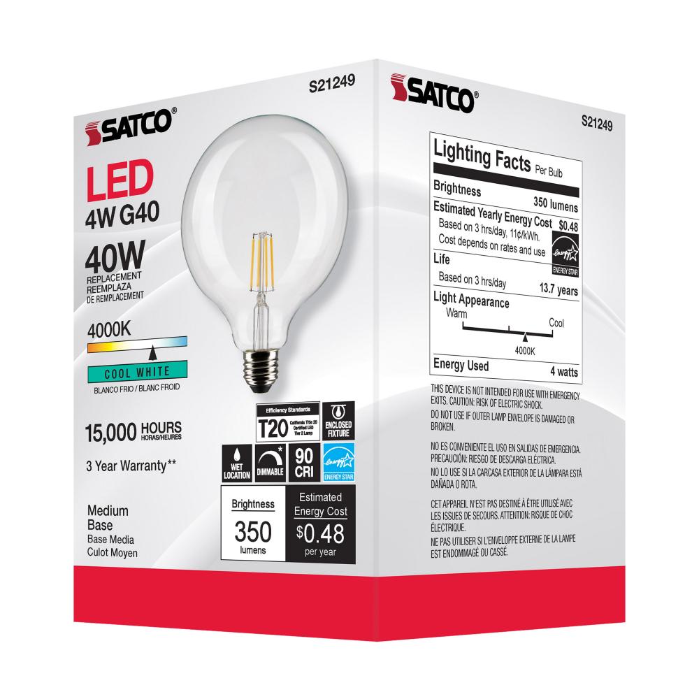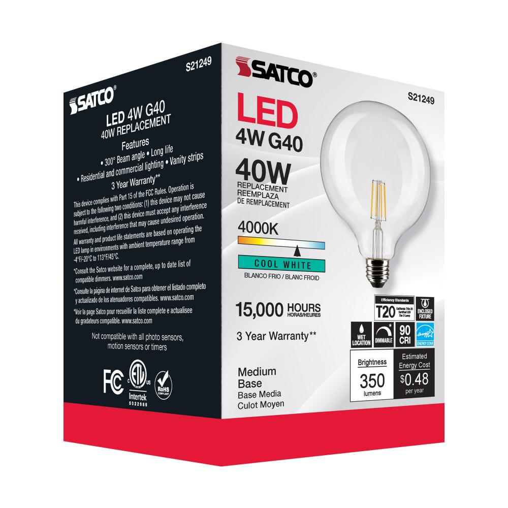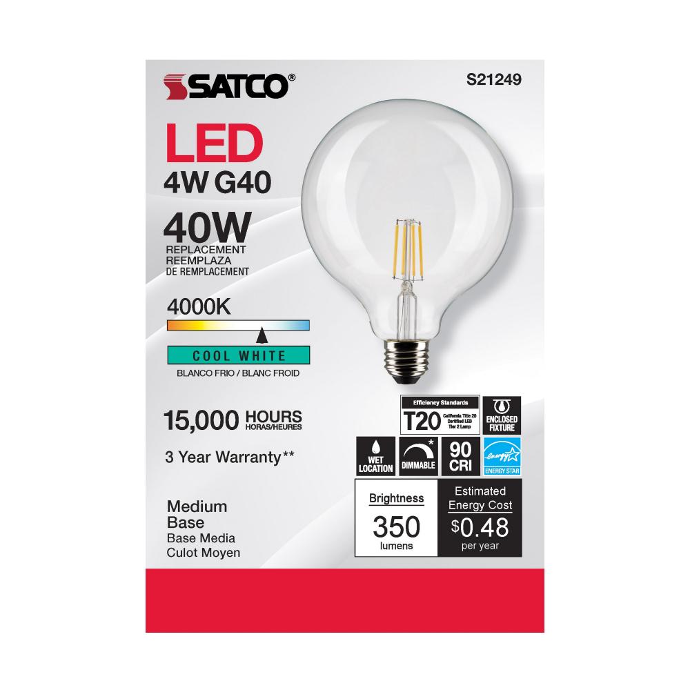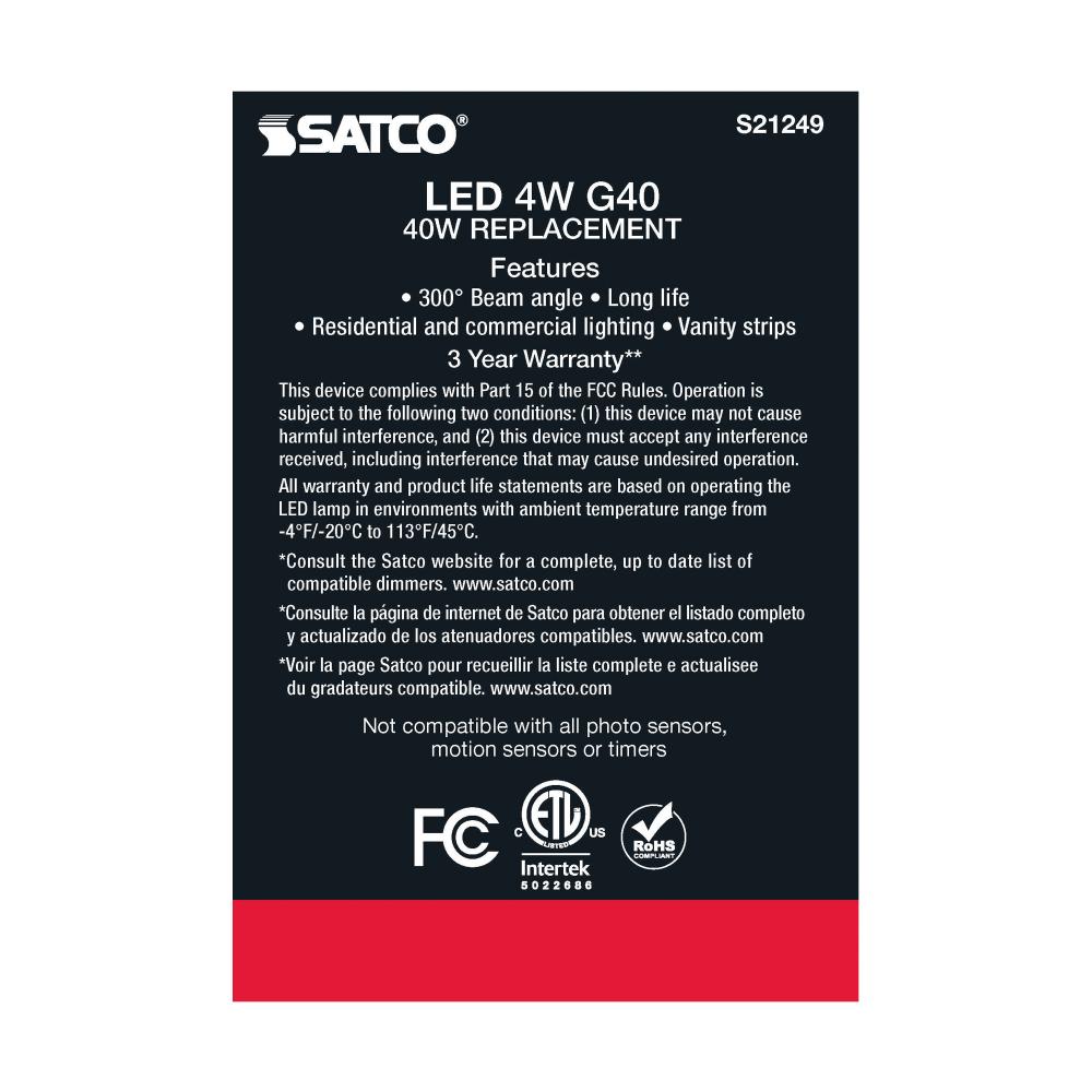 Satco's S21249 4-watt LED lamp is traditional, yet contemporary with its vintage style and energy saving LED technology. Elegantly illuminate any room in the house with this dimmable, globe shaped bulb. Sophisticated and modern, this lamp delivers 15,0