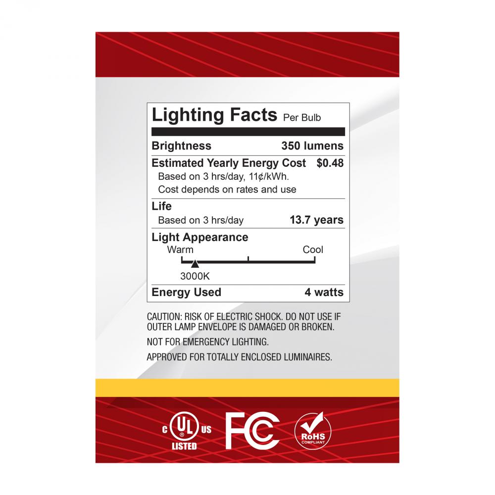Satco's 4-watt LED lamp is traditional, yet contemporary with its vintage style and energy saving LED technology. Elegantly illuminate any room in the house with this dimmable, globe shaped bulb. Sophisticated and modern, this lamp delivers 15,000 hour